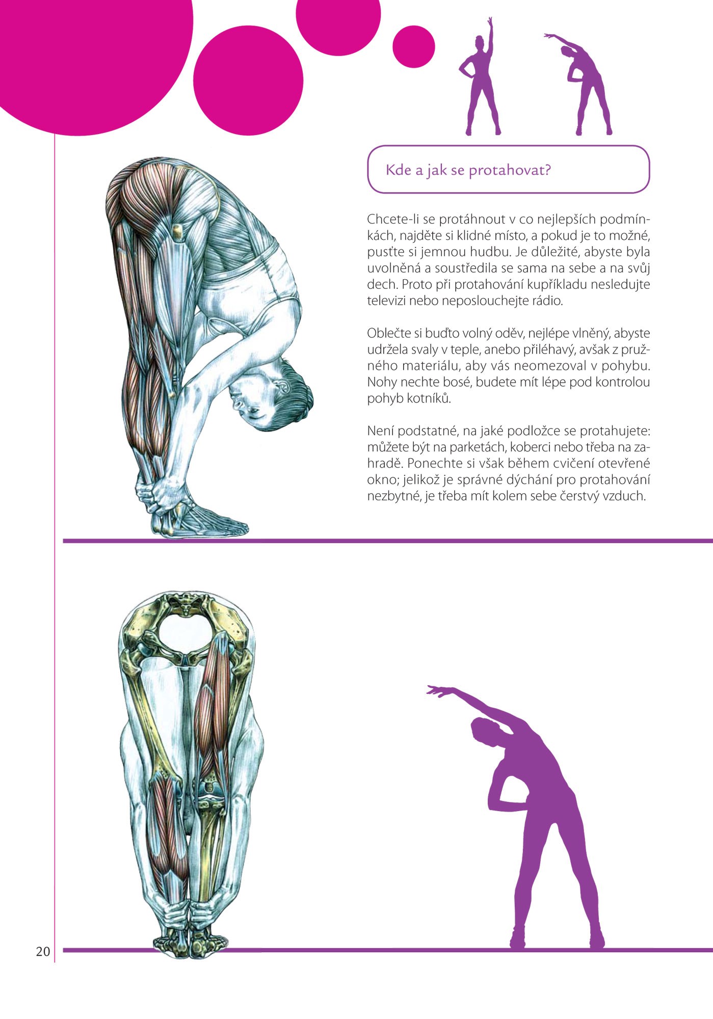 * Navíc strečinková cvičení na protažení namáhaných svalů přizpůsobená každé části těla.