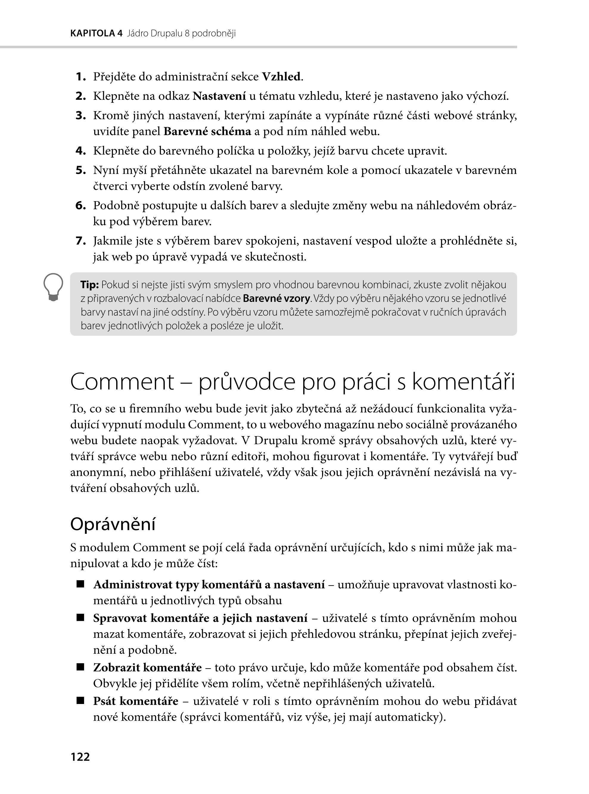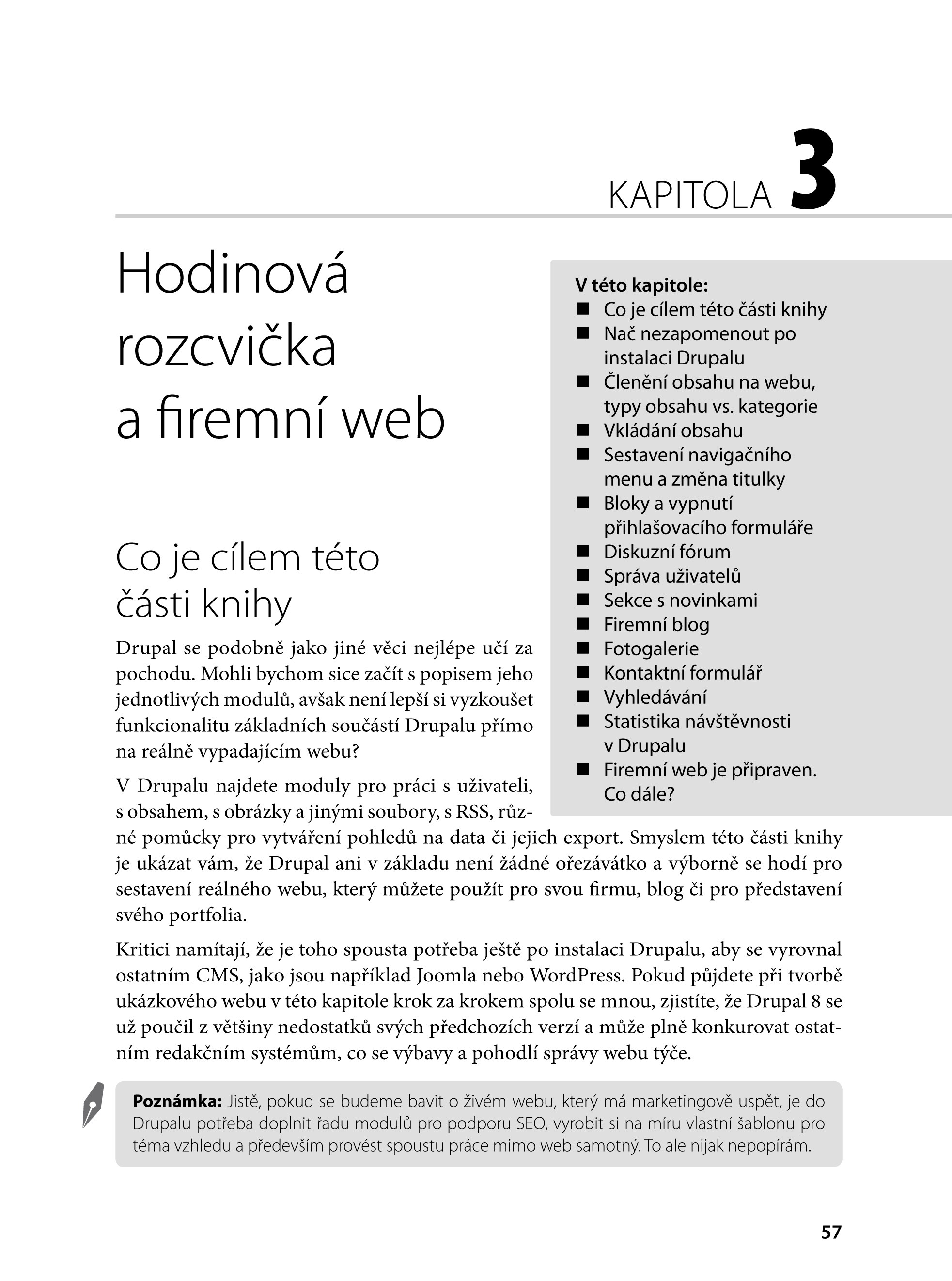 Zkušený autor patřící mezi přední tuzemské odborníky na Drupal vás v jedenácti kapitolách naučí vše důležité od instalace a prvotní konfigurace, přes správu modulů, uživatelů, práci s layoutem a obsahem až po pokročilé postupy, jako je zálohování nebo přesun Drupalu. Vlastní výklad je realizován na příkladech a kromě nich najdete v knize celou řadu užitečných tipů z praxe. Nezapomnělo se ani na řešení obvyklých problémů. Kniha nevyžaduje žádné předchozí znalosti či zkušenosti s tvorbou webů.