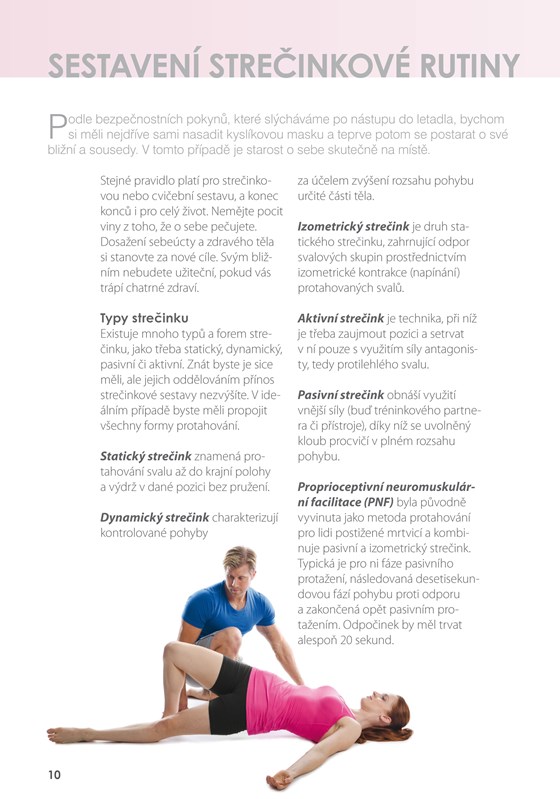 Autor vás provede strečinkovou sestavou zaměřenou na všechny hlavní svalové skupiny od hlavy až po paty. Najdete zde také rychlý strečinkový program, ideální pro ty, kdo se chtějí cítit a vypadat skvěle, ale nemají pokaždé čas stihnout celou sestavu. Kniha zahrnuje rovněž kapitoly věnované cvikům pro těhotné, cvičení s partnerem nebo do kanceláře – cvičit lze v různých situacích. Novinkou je cvičení na pěnovém válci, které umožňuje tzv. myofasciální masáž k odstranění ztuhlosti a bolesti svalů.