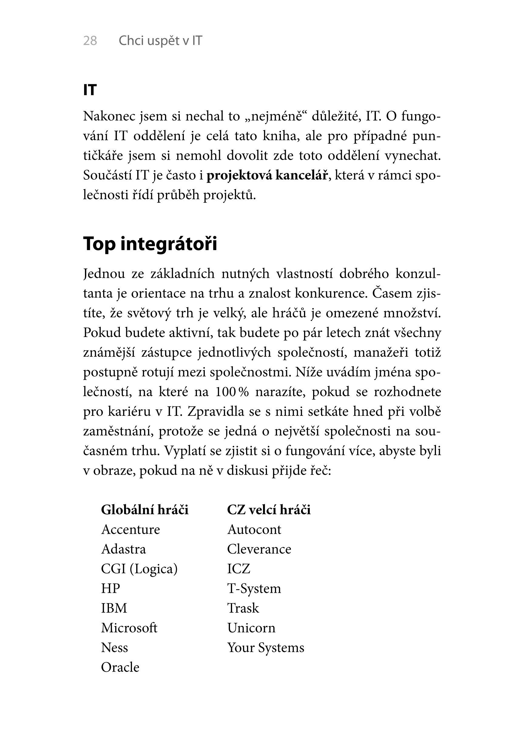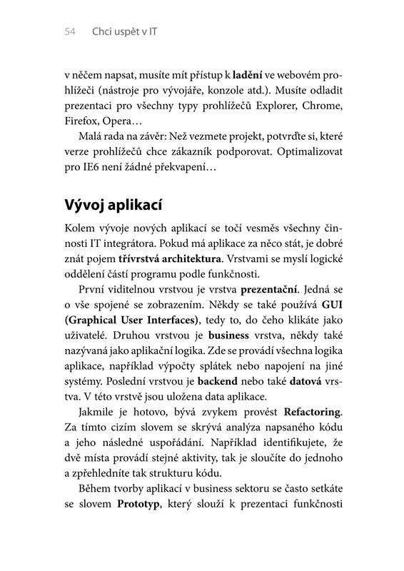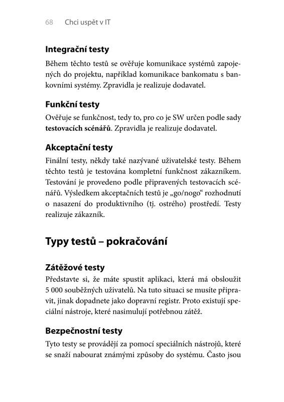 Autor vám v této publikaci nastíní, jak to v IT světě chodí, a poskytne doporučení pro výběr studia a podklady pro výběr směru, kterým se ve své kariéře můžete vydat. Celá publikace je navíc psána velmi stručným, srozumitelným jazykem. Ihned na začátku knihy najdete to nejdůležitější: devět kroků vedoucí k úspěšné IT kariéře.