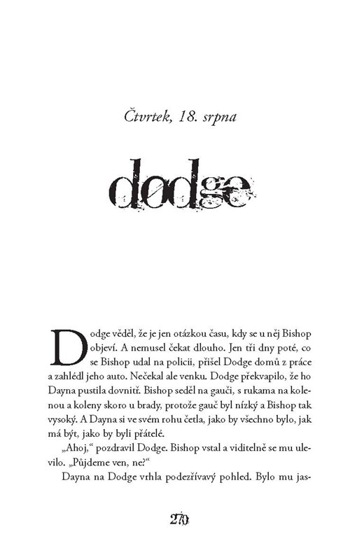 Panika začala jako spousta věcí v Carpu, nudném malém městečku uprostřed ničeho – protože bylo léto a nebylo co dělat. O co v téhle hře jde? Je to prosté. Nemít strach. Heather nejdřív ani nenapadlo, že by se do Paniky pouštěla. Dodge se Paniky nikdy nebál, právě naopak. Všichni mají nějaký důvod proč hrát. Heather a Dodgovi přinese hra nová spojenectví, překvapivá zjištění a možná i nějakou tu první lásku – a vědomí, že někdy nejvíc potřebujeme právě to, čeho se k smrti obáváme.