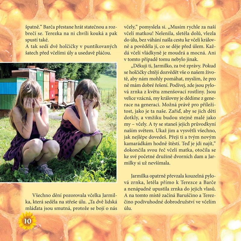 Terezka a Baruška tráví prázdniny u strejdy, včelaře. Rády by se dozvěděly, jaký život vedou včely uvnitř úlu a jejich přání se jim splní – tajným kouzlem se zmenší a prožijí neuvěřitelná dobrodružství ve včelí říši. Společně se včelkou Dorotkou se učí všem povoláním, která jsou v úlu potřebná a dokonce se jim podaří odhalit spiknutí, které chystá zrádný trubec Rudolf společně se sršním generálem... Poutavý a poučný příběh je doplněn krásnými fotografiemi.