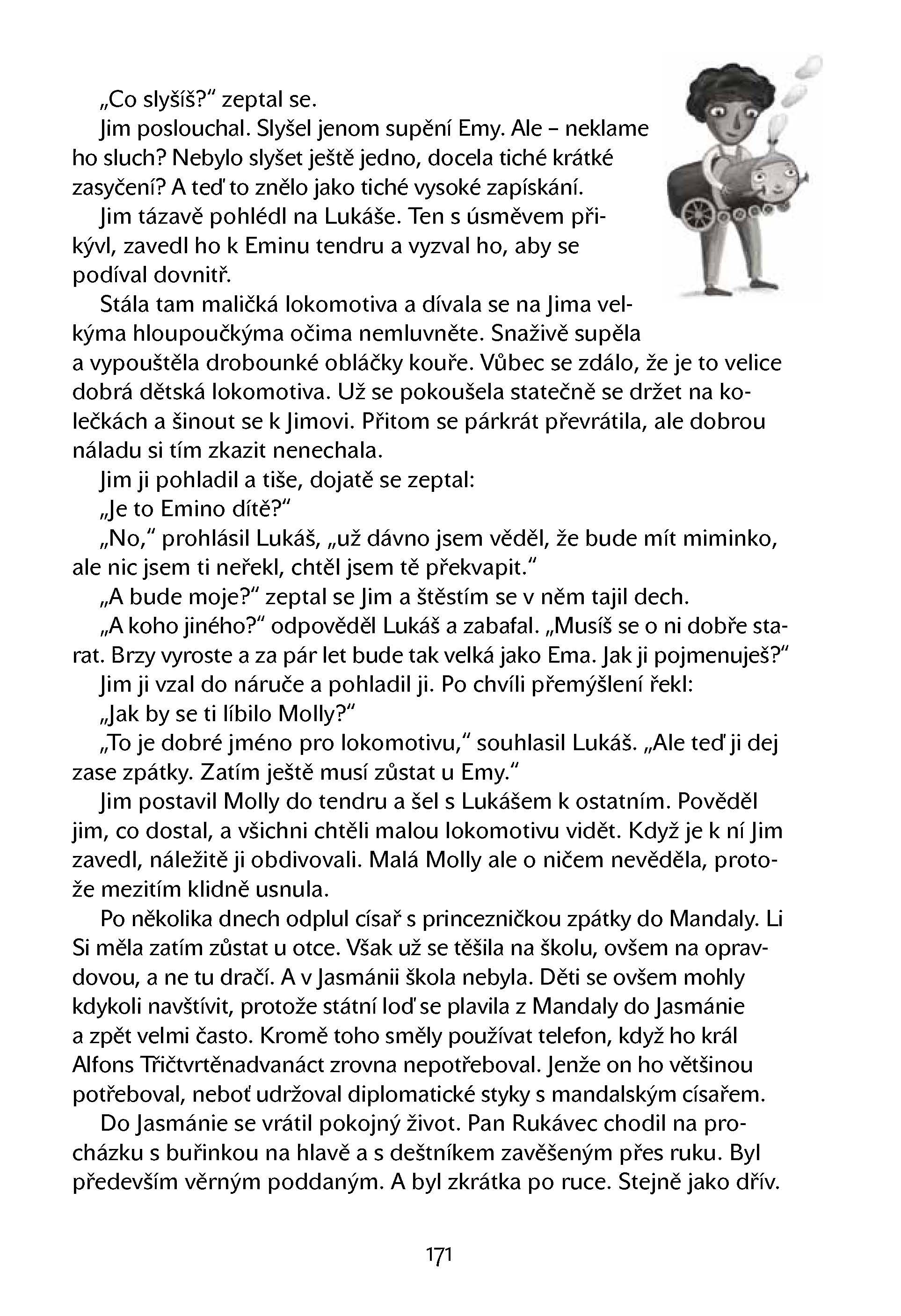 Kdo je Lukáš? Lukáš je Jimův nejlepší kamarád a je strojvůdcem a vlastníkem lokomotivy Emy. A tihle tři se jednoho dne vydali do světa. Ovšem tahle cesta se změnila ve velké dobrodružství – pluli po moři do Mandaly, kde slíbili císaři najít ztracenou dceru, projeli pohořím Koruna světa, Údolím soumraku a skalní bránou Ústa smrti, potkali polodraka i obra, až konečně dorazili do dračího města Žalmánie. Ale tím tohle podivuhodné putování zdaleka neskončilo!