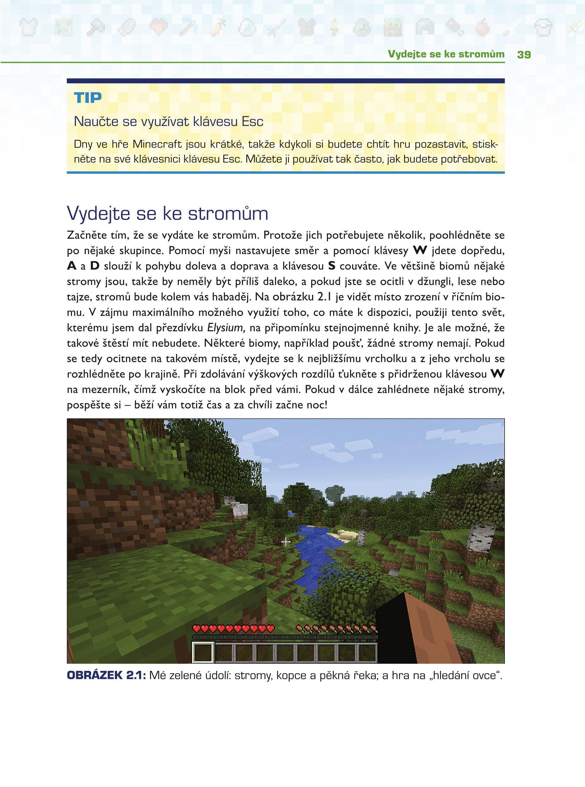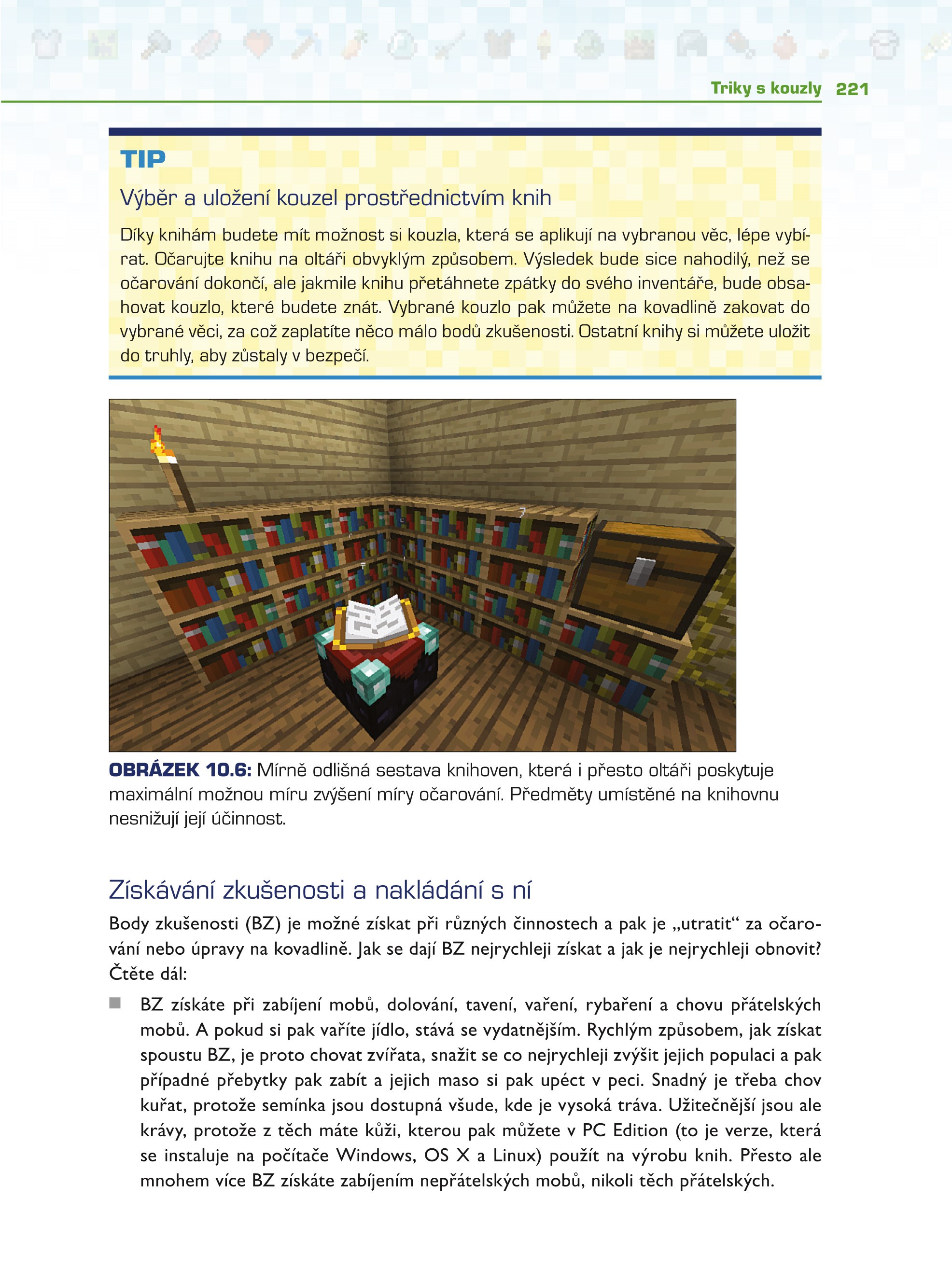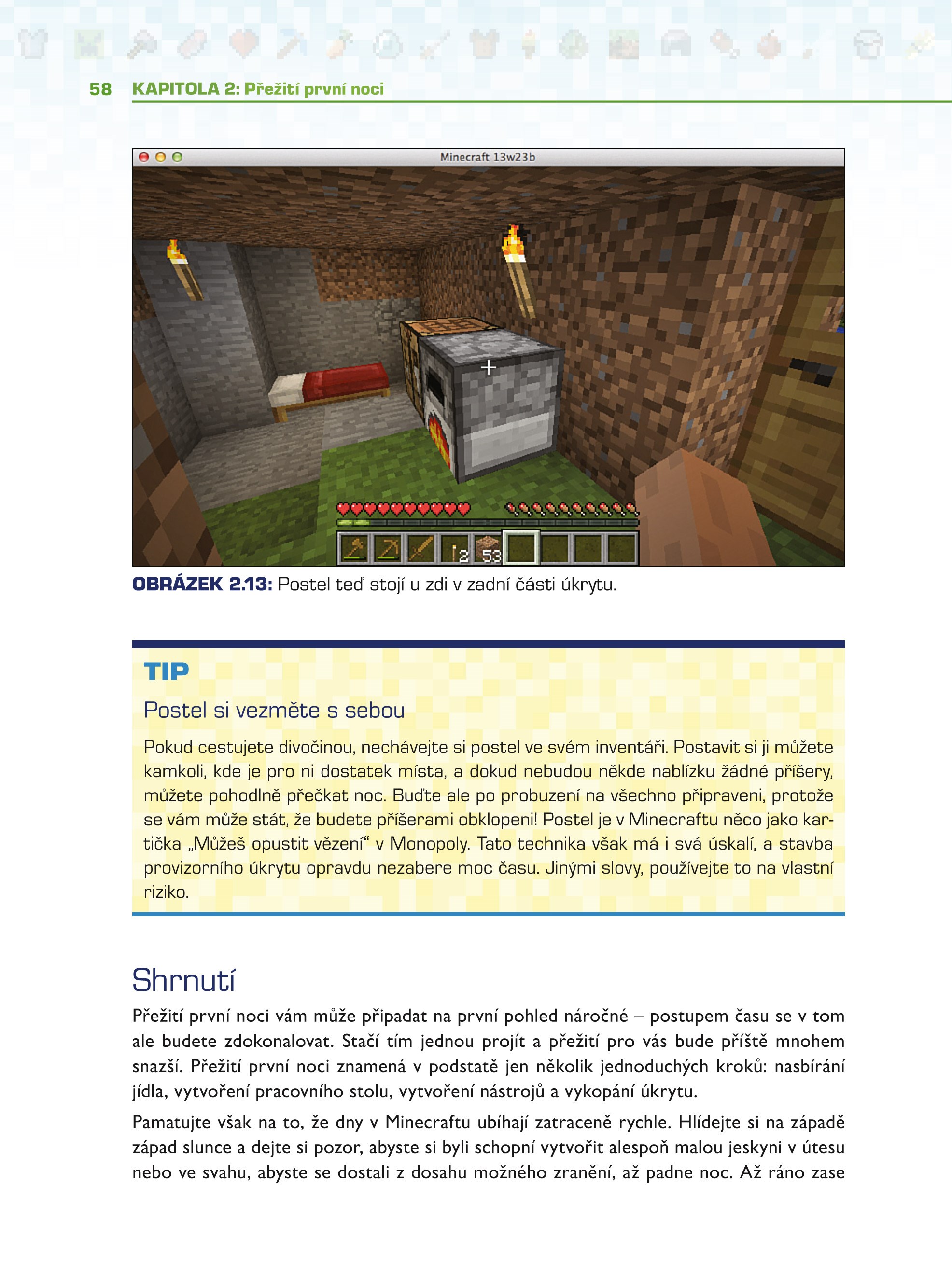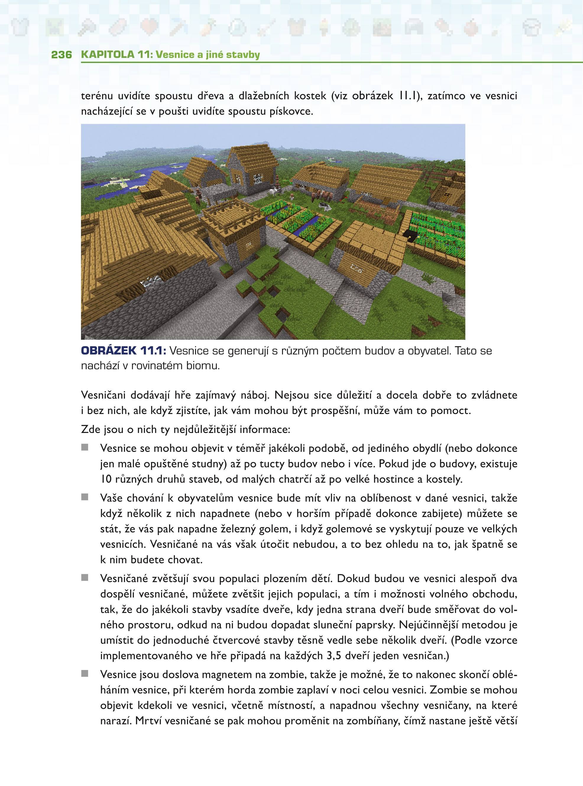 Vytvoř si svůj vlastní svět! Minecraft je mnohem víc než jen hra: je to alternativní vesmír plný tvorby, dobrodružství, napětí, vášně a překvapení. Není do něj ale radno chodit na vlastní pěst. Proto si s sebou na cestu nezapomeň vzít tohoto zkušeného průvodce, který tě bezpečně provede všemi nástrahami světa Minecraftu. Dozvíš se, jak přežít první noc, rychle najít a dolovat rudy, ochočit přátelské moby, vybudovat vlastní železniční síť a spoustu dalších vychytávek, díky kterým předčíš všechny kamarády!
