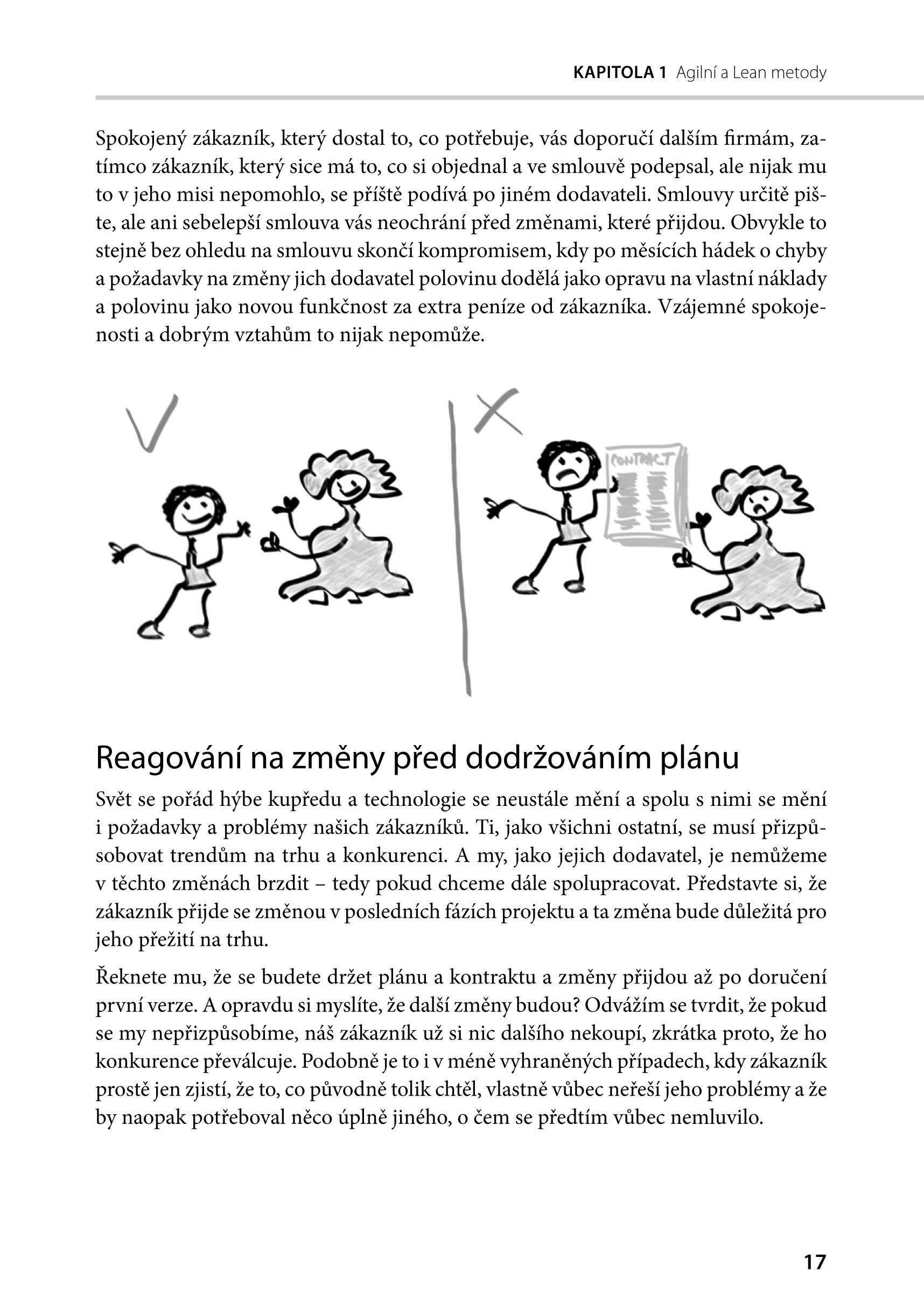 Dvojice autorů, která se v oblasti agilních metod pohybuje řadu let a pracuje s nimi denně, vás seznámí nejen s tím, co agilní přístup znamená, ale i jak jej správně nasadit. Na řadě příkladů poznáte možná úskalí jejich nasazení a dozvíte se, jak z nich může váš tým profitovat. Kniha je zaměřena na širokou oblast profesí od vývojářů a testerů přes designéry, architekty a analytiky až po projektové a produktové manažery, vedoucí oddělení a manažery či ředitele celých společností.