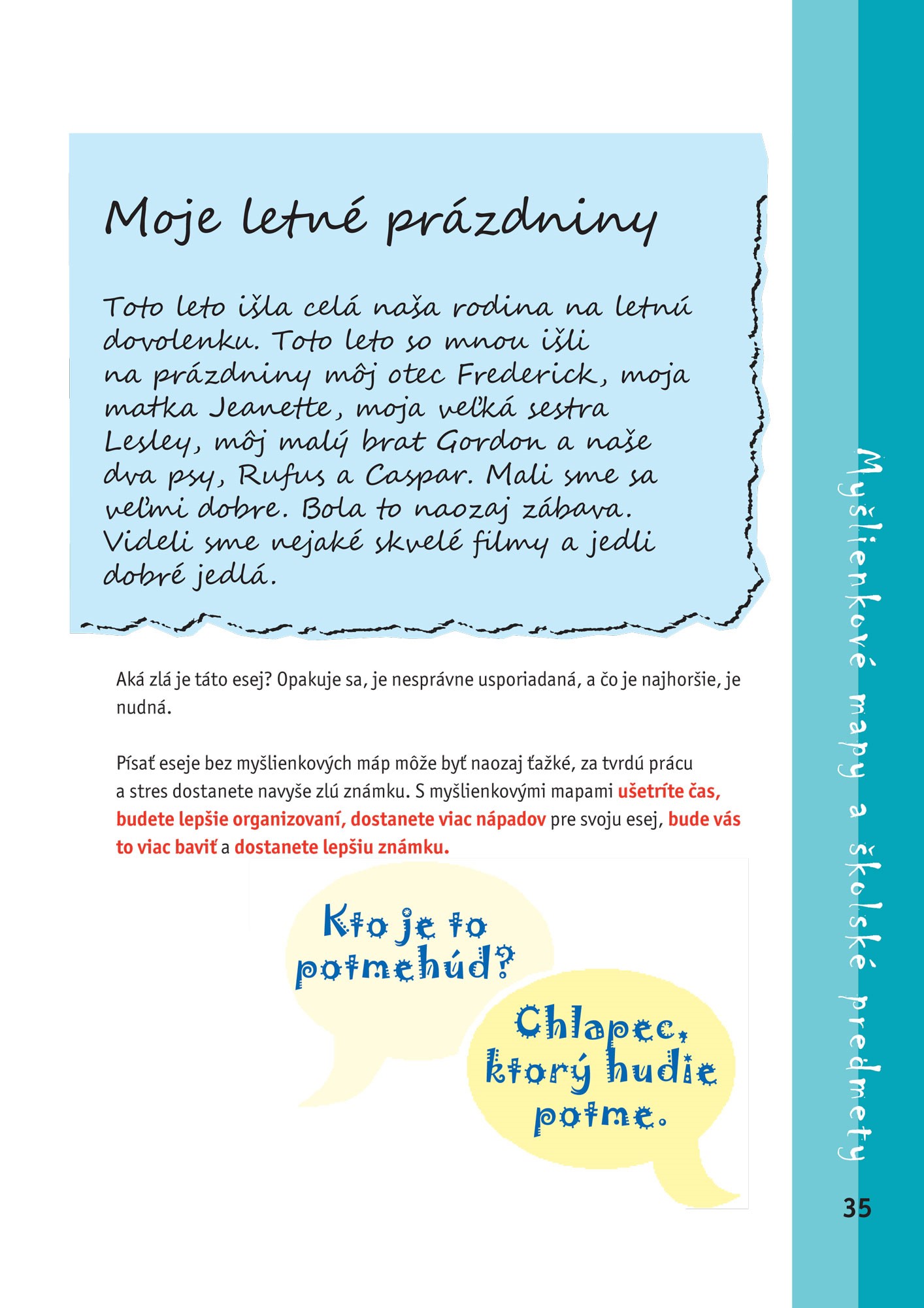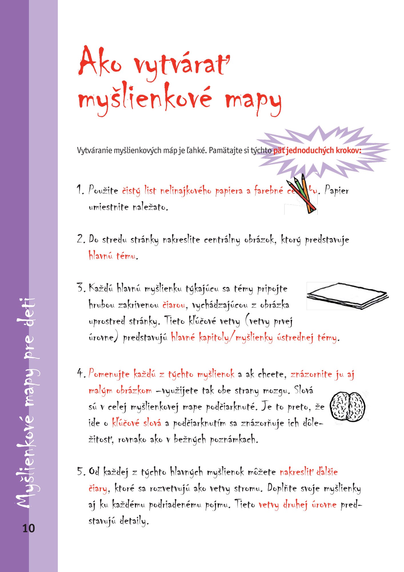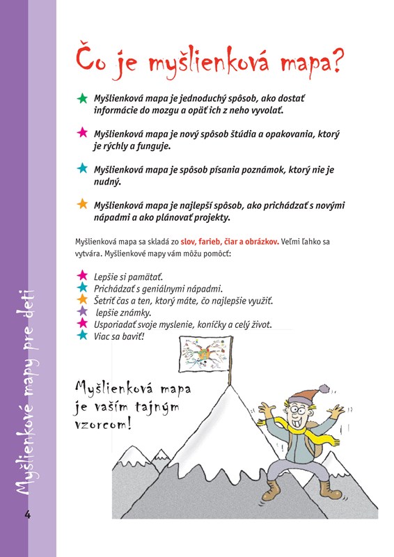 Kniha je písaná tak, aby sa deti pri práci s ňou zabávali. Je plná obrázkov, vtipov a hlavolamov, ktoré im pomôžu zlepšiť sústredenie i pamäť. Je určená najmä deťom od 7 do 14 rokov, ale na svoje si prídu aj staršie deti, a dokonca aj dospelí, ktorí sa doteraz s myšlienkovými mapami ešte nestretli.