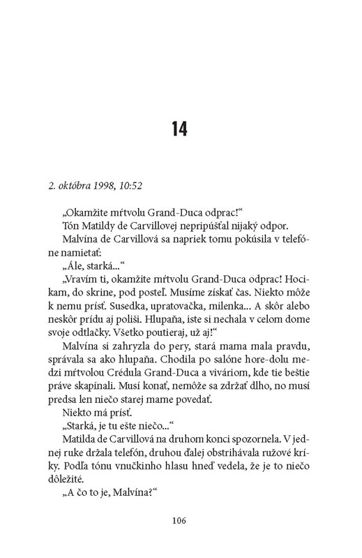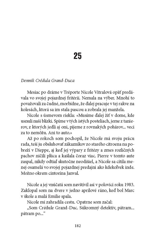 Príbeh čitateľa vtiahne do deja, ktorý sa odvíja od Vrchu hrôzy v pohorí Jura a napínavo pokračuje cez prestížnu parížsku štvrť Butte-aux-Cailles až po robotnícky Dieppe.