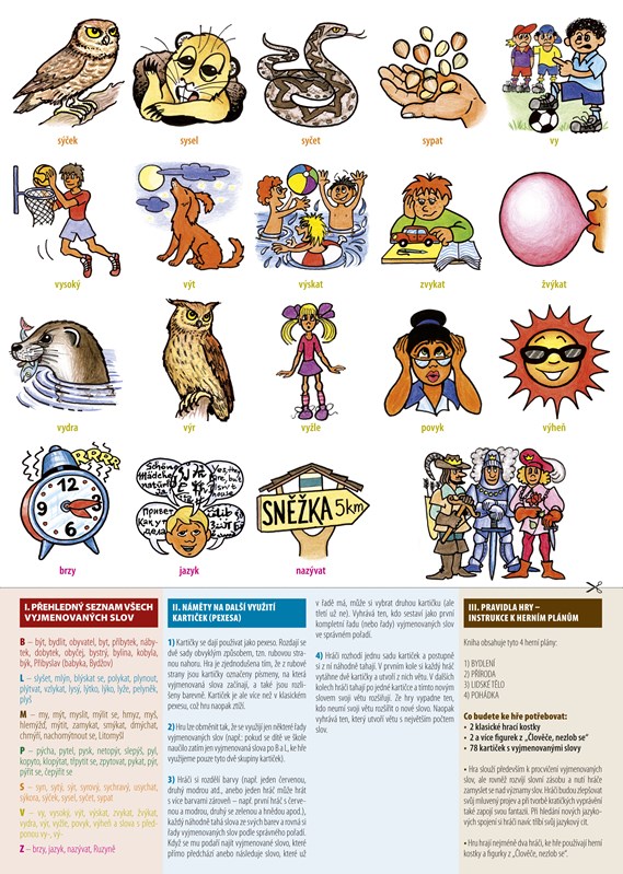 Děti budou v průběhu jednotlivých her procházet rodinným domem, volnou přírodou, lidským tělem i pohádkovou krajinou a po cestě k cíli je čeká mnoho rozmanitých a zábavných úkolů, při jejichž plnění si procvičí nejen vyjmenovaná slova po B, L, M, P, S, V a Z, ale také jiné důležité schopnosti a dovednosti, mezi něž patří: rozšiřování slovní zásoby, zlepšování mluveného projevu, tříbení jazykového citu a rozvoj fantazie. Věřím také, že se nad knihou všichni hráči, včetně dospělých, dobře pobaví a stráví spolu nejednu příjemnou chvíli.