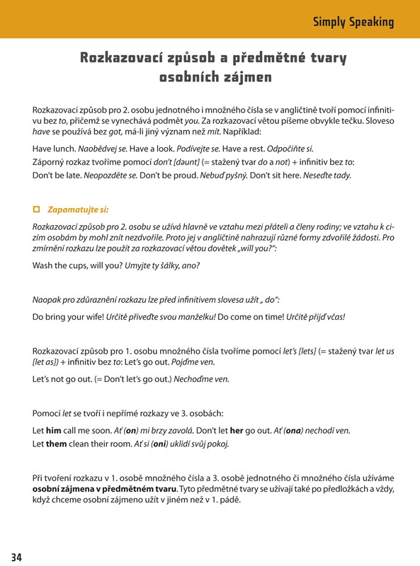 Titul „Simply Speaking“ je jedinečnou a na trhu ojedinělou učebnicí a cvičebnicí anglického jazyka pro samouky, která uplatňuje metodu přímého mluvení. Jejím hlavním přínosem je, že v sobě kloubí vyčerpávající výklad gramatiky s širokým spektrem cvičebních vět, které nahrazují gramatická cvičení. Studenti procvičují pouze poslechem a mluvením nahlas spolu s mluvčími na CD.