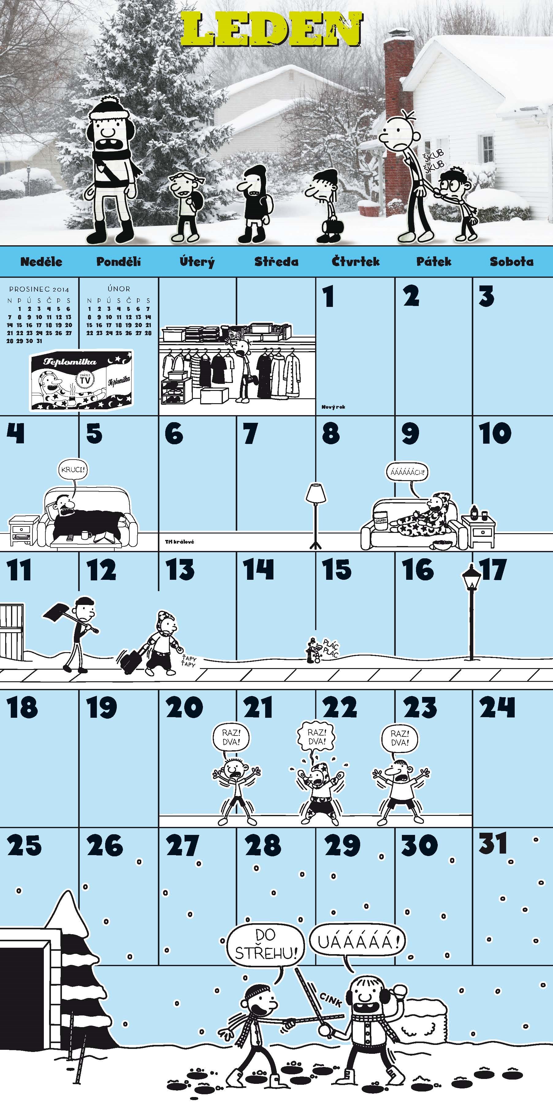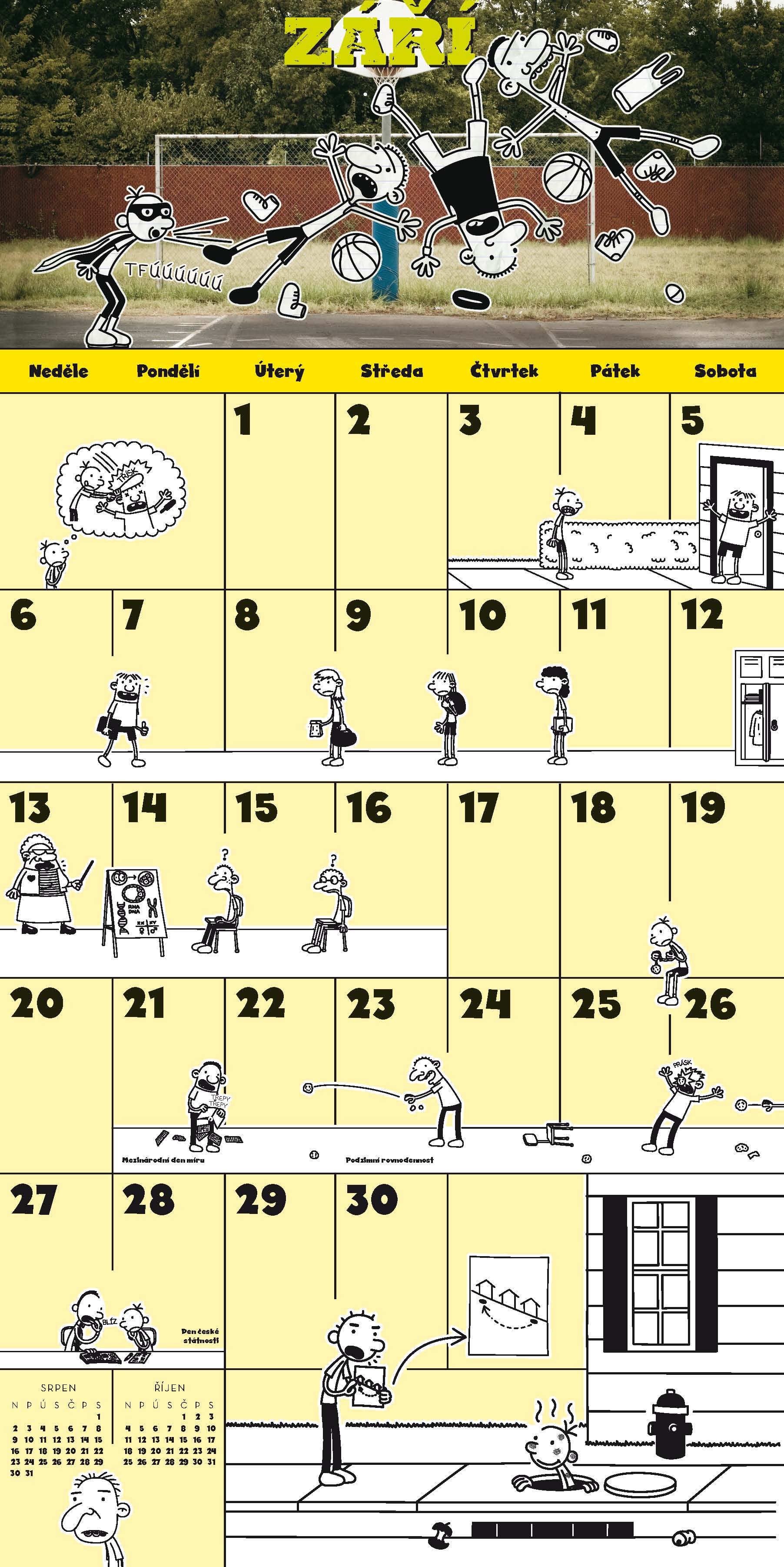 V jedinečném nástěnném kalendáři s klasickými kresbami Jeffa Kinneyho a barevnými citáty najdete vše...