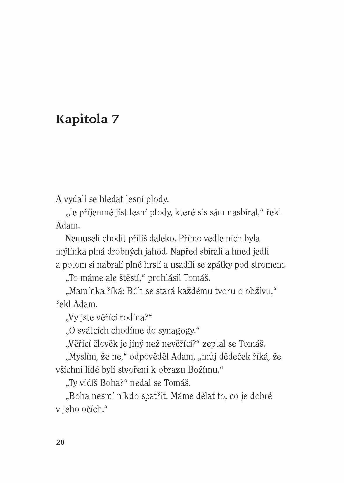 Detská kniha pre čitateľov od 8 rokov O holčičce z jiného světa tak trošku klame nielen svojím názvom, ale aj obsahom. Napriek tomu, že anotácia na zadnej strane obálky ponúka príbeh dvoch židovských chlapcov a tajomného dievčaťa, ktoré akoby nebolo z tohto sveta, Aharon Appelfeld vás nečakane postaví pred neprikrášlenú a miestami nepríjemne drsnú realitu. Akási fantastickosť prirodzene plynúca z názvu knihy sa teda z príbehu vytráca už prvou vetou a opätovne sa do neho už neprinavracia. No aj napriek tomu ju nájdete. Je trošku iná. Ukrýva sa vo viere v lepšie časy i našu ľudskosť. Tlie v sľuboch, ktoré dali mamy svojim deťom a rozhorí sa aj vo vzťahu, ktorý si medzi sebou vybudujú vojnou vystrašení kamaráti v korune bujarého stromu. Prítomná je aj v opise ich každodennej rutiny, ako aj v rozhovoroch, ktoré medzi sebou detskí hrdinovia vedú. Napriek tomu, že sú obaja úplne rozdielni, vedia si k sebe nájsť cestu, a to či už cez rôzne bežné témy pragmaticky zmýšľajúceho Tomáša, alebo prostredníctvom optimistického nadhľadu veriaceho Adama a jeho psa.