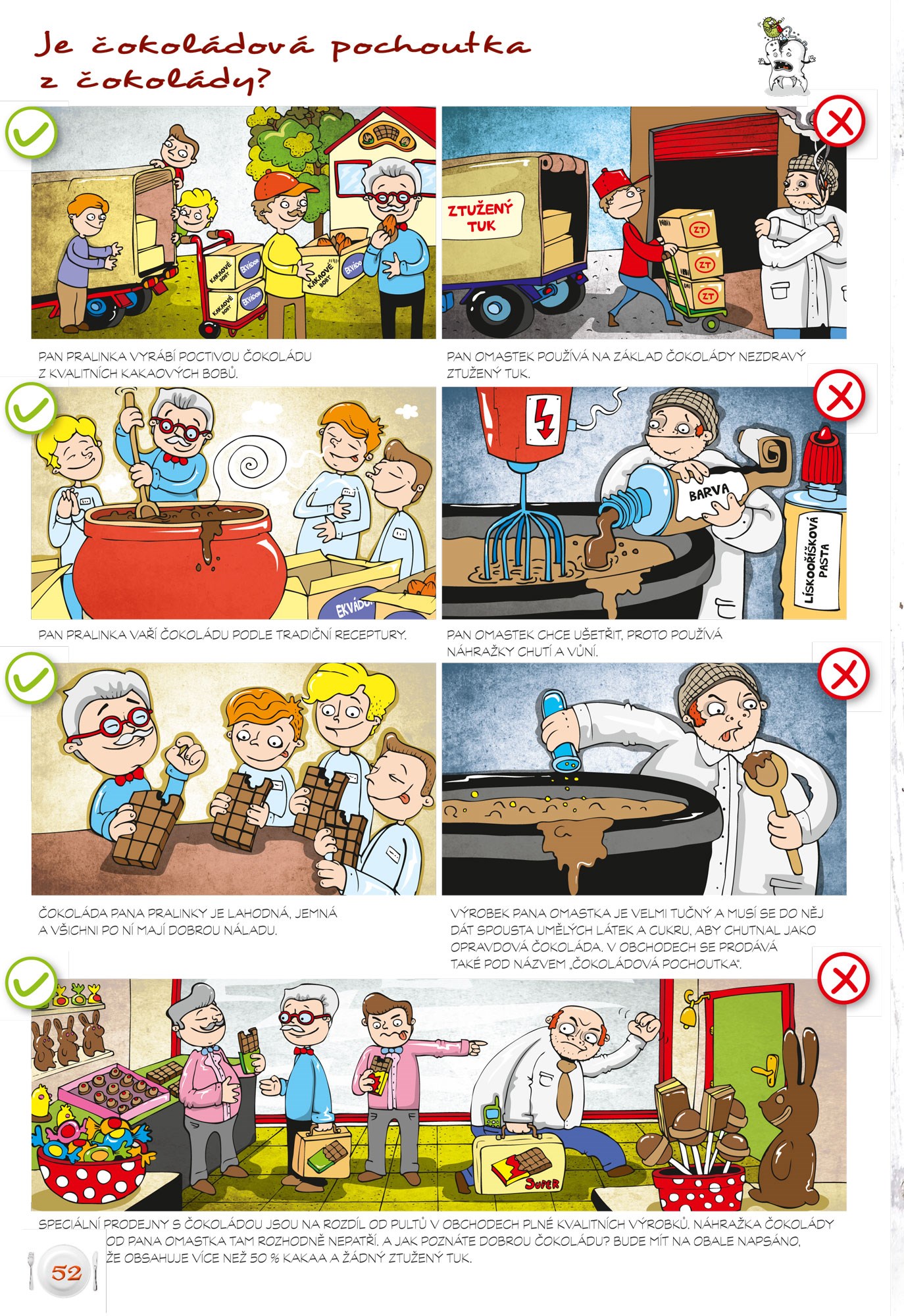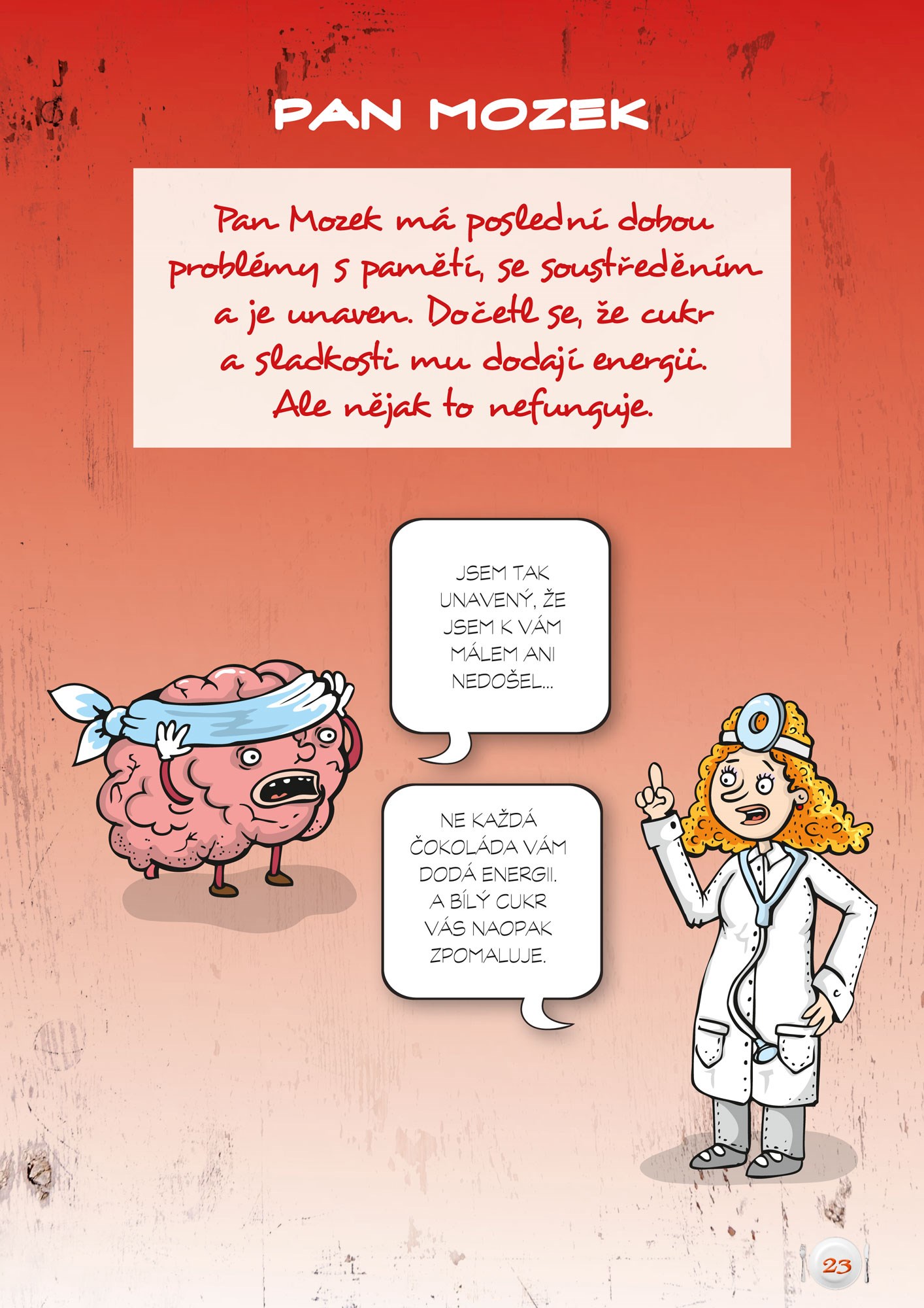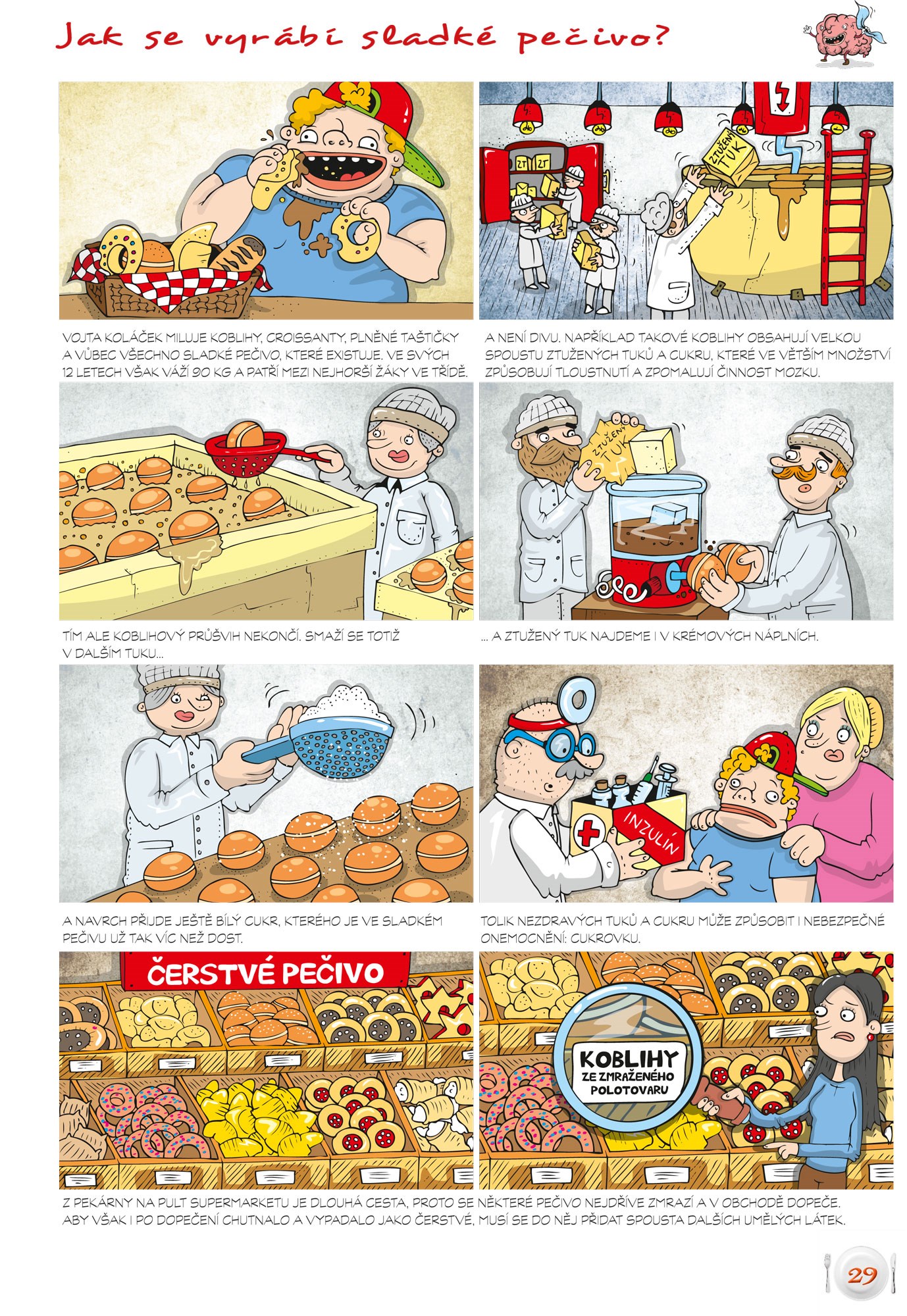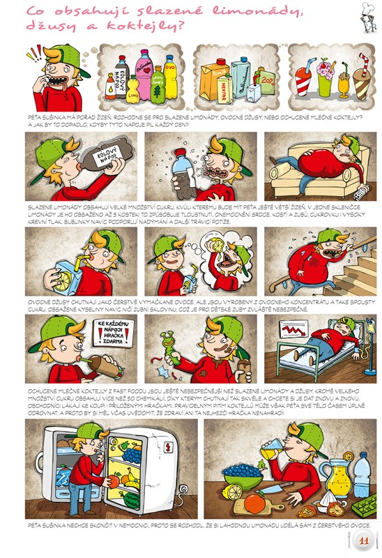 Cílem knihy je (nejen) dětem (cca 10 let) vtipným způsobem (forma komiksu) odhalit postup, jak se vyrábí jejich oblíbené „pochoutky“ (např. hamburger, "smažák", krabí tyčinky, sladké pečivo, točená zmrzlina apod.), jaký negativní vliv na zdraví má pravidelná konzumace těchto nezdravých jídel a jak si lze jednoduše a levně připravit jejich zdravou a chutnou variantu. Knížkou čtenáře provází sympatická mladá doktorka Nebolítová, která bude důležitým orgánům v lidském těle vysvětlovat, z jakých důvodů onemocněly a pomocí zdravé stravy jim navrátí ztracenou kondici.