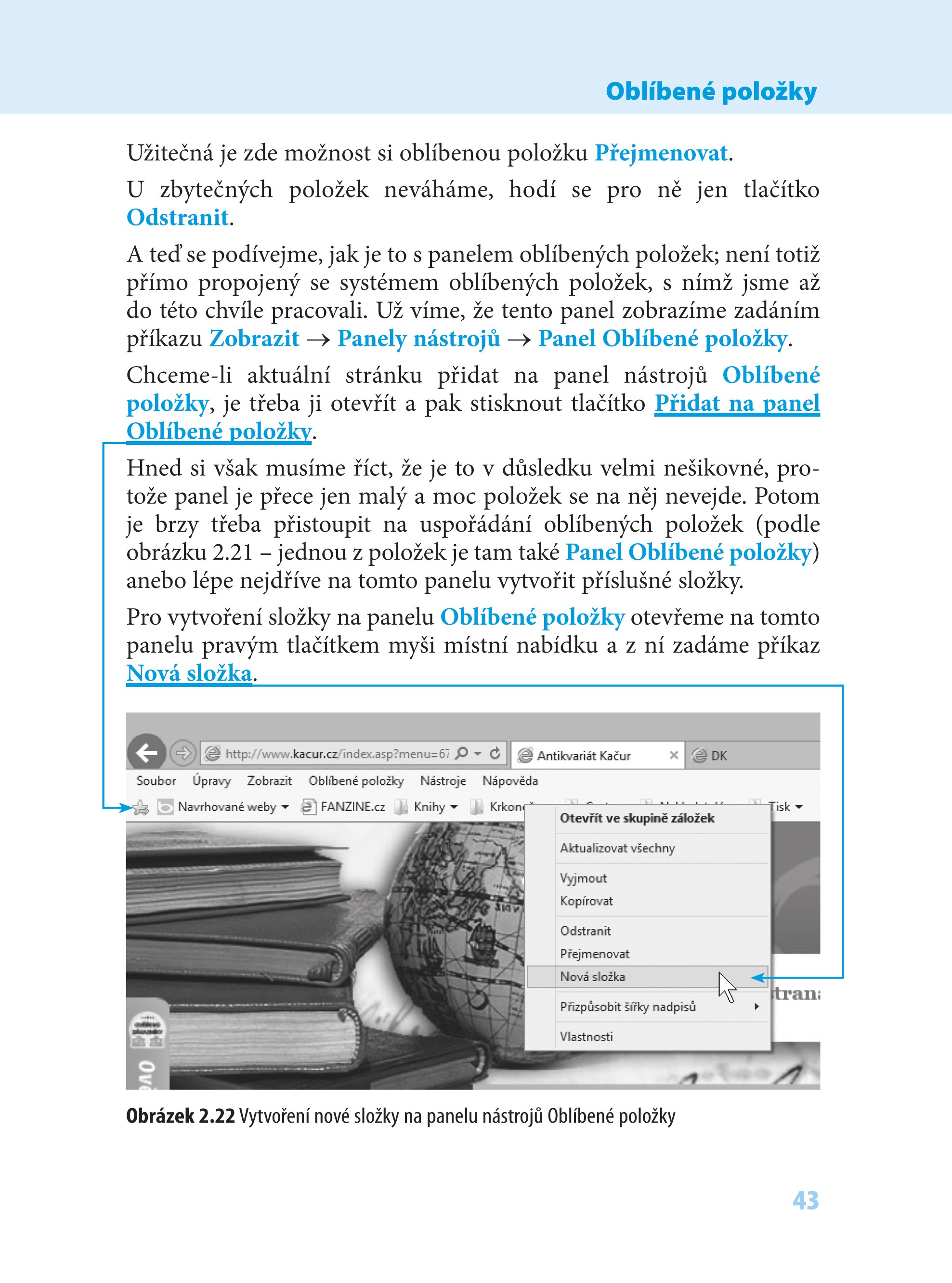 - Používat odkazy, záložky, oblíbené a historii prohlížení