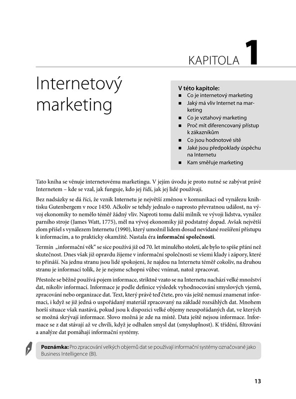Zkušený lektor a vyučující vám v tomto zbrusu novém, ze 70 % přepracovaném a rozšířeném vydání bestselleru vysvětlí všechny metodické i technické aspekty úspěšné propagace na Internetu a podělí se s vámi o řadu zkušeností z marketingové praxe. Naučíte se také své internetové aktivity měřit a vyhodnocovat.