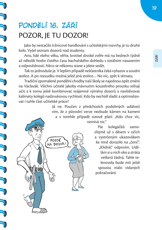 Jsou učitelé ulejváci, nebo nedocenění pracovníci? Zažívají muka, nebo zábavu? Názory se různí, kdo by se s tím nesetkal. Pojďte prožít školní rok 2013/2014 ještě jednou – den po dni, vážně i nevážně – a zjistěte to sami. Nahlédněte pod pokličku každodenní práce pedagoga a tajuplného dění na jedné „normální“ škole.