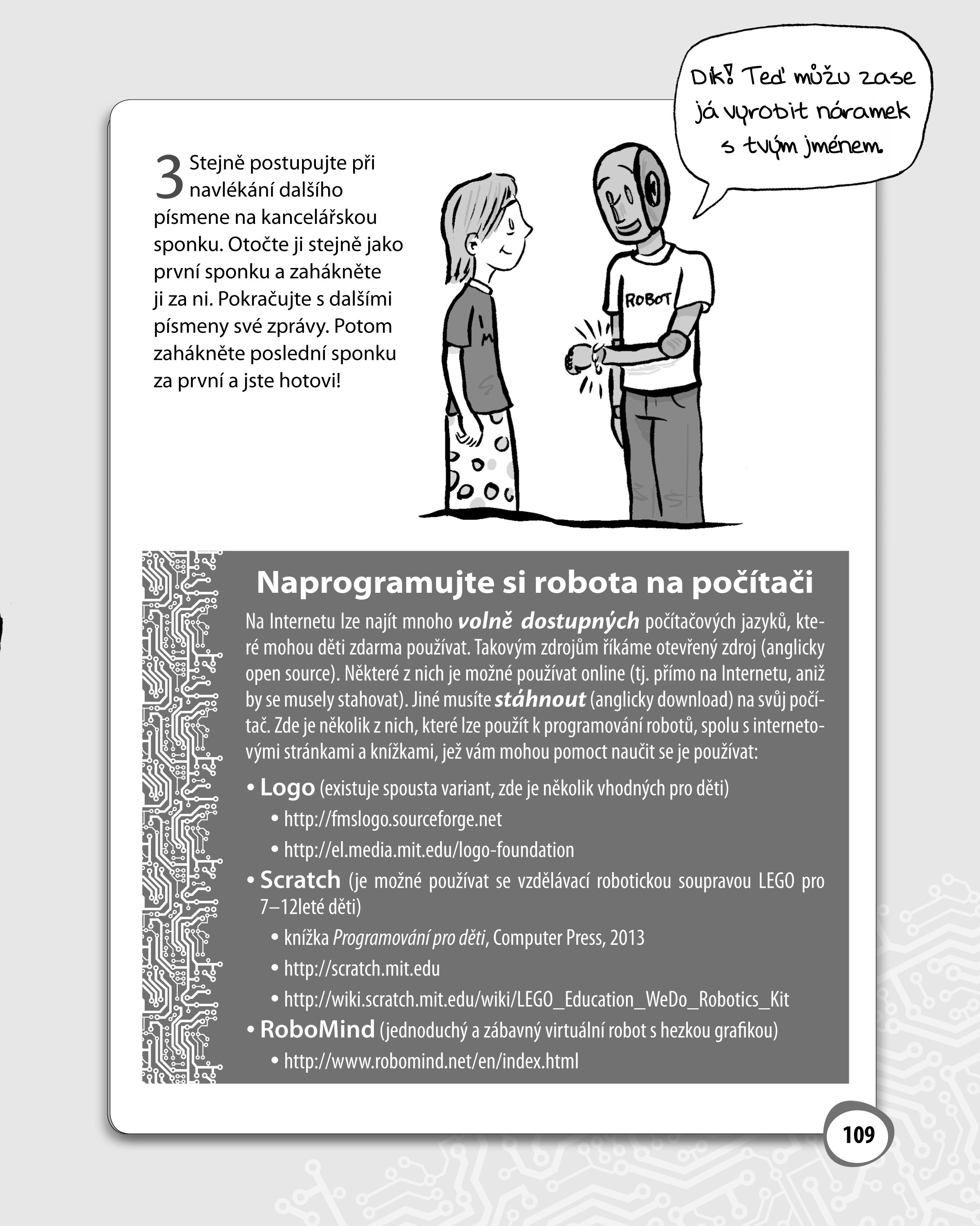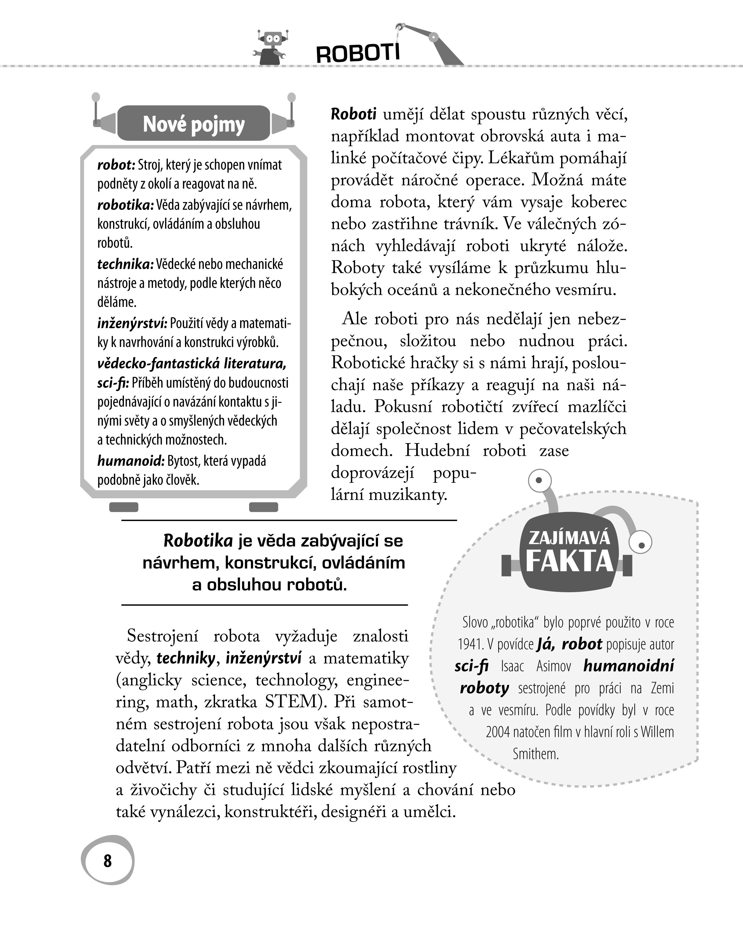 Ve 20 zábavných projektech si postavíte své vlastní roboty a objevíte stroje budoucnosti. Činnosti popsané v této knize vám umožní používat své schopnosti a představivost a nacházet tvořivá řešení složitých problémů. A co je nejlepší – výsledkem vaší práce budou skvělé modely robotů, které budou opravdu fungovat!