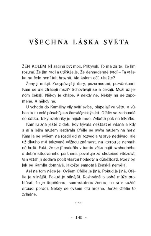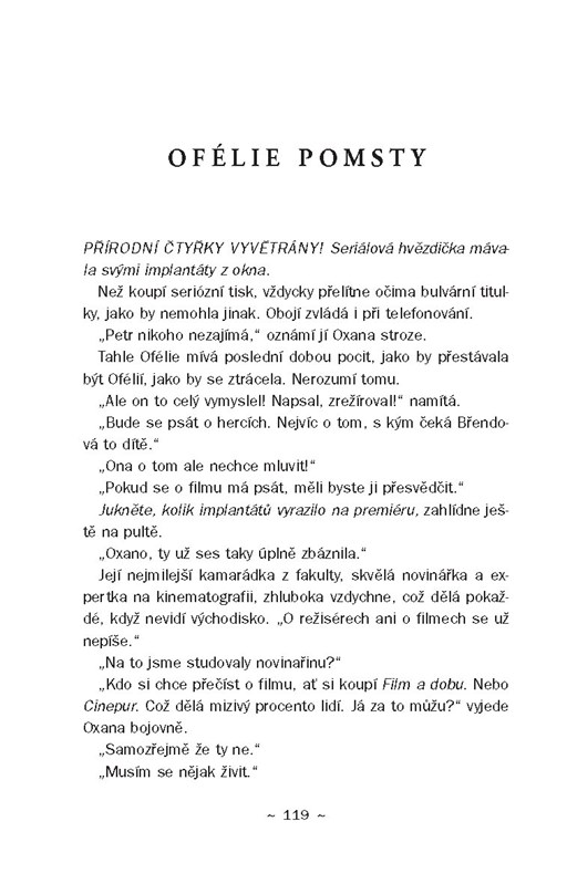 Sedm příběhů o důležitých změnách v ženském životě i těle. Sedm různých hrdinek postupně zažívá zmatky dospívání, první lásku, těhotenství, rozchod, zklamání, nenávist i lásku na sklonku života. Každá z nich je jiná, přesto dala autorka všem stejné jméno Ofélie, symbolizující archetyp ženské něhy, lásky, ale i tragiky. Všechny ženy jsou Ofélie a věk na tom nic nemění, říká Irena Obermannová.