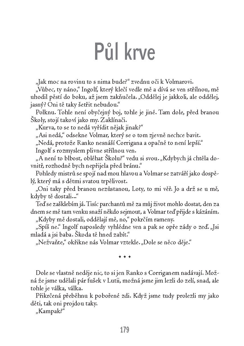 Hlavní hrdinka Psí zimy zaklínačka Lota si získala srdce čtenářů i čtenářek, proto se autorka rozhodla doříci to, co bylo v románu jen naznačeno o jejím dětství a dospívání, o jejích rodičích a o tom, jak se dostala do Školy. Poznáte, kde jsou kořeny jejího přátelství s Torgem i jak se seznámila s Urianem. Navíc se můžete těšit na víly a elfy či na nemluvňátka se zatraceně ostrými zoubky.