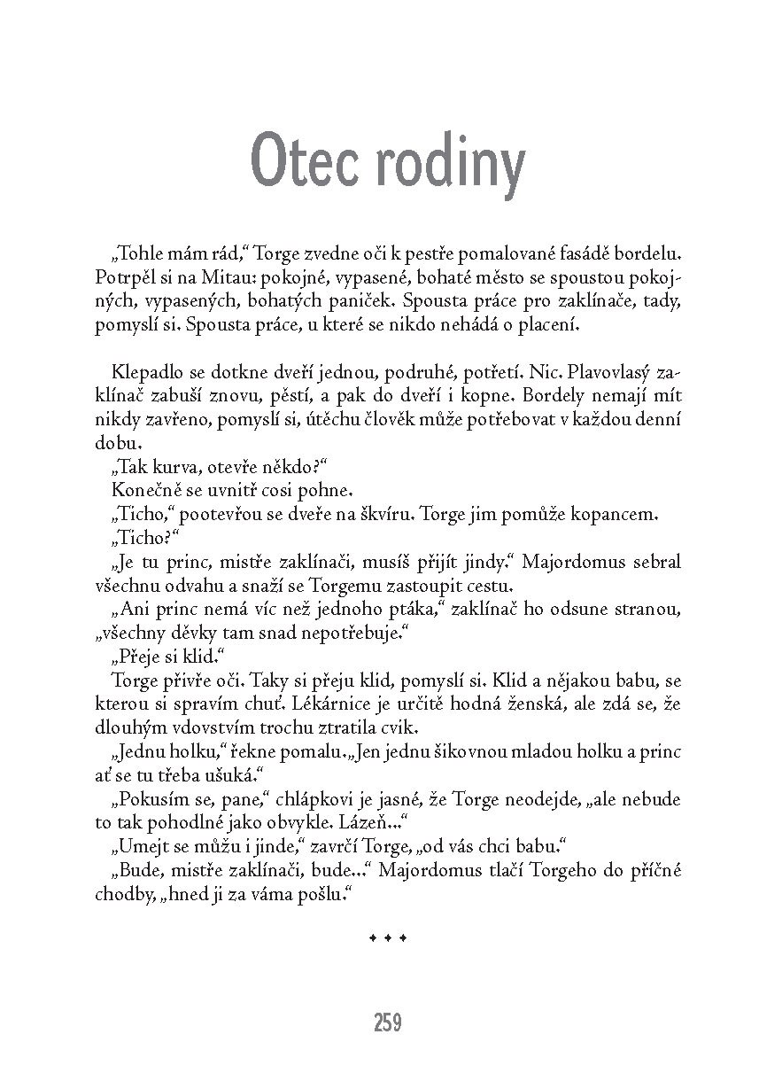 První rána, první láska, první smrt… a pak další rány, smrti, smutky i touhy. Dokáže drsný život z dívky vykovat ženu tvrdou jako ocel? Je lepším druhem upír s loutnou, nebo zaklínačský výtržník s mečem? Možná oba.