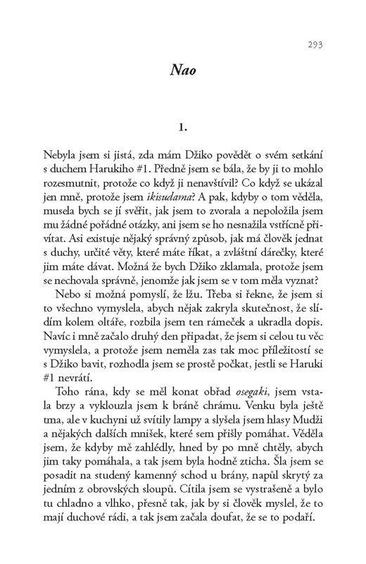 Mladá tokijská studentka Nao je šikanovaná svými spolužáky. Aby unikla dennodennímu týrání a ponižování, rozhodne se spáchat sebevraždu. Ještě před svou smrtí však chce na stránkách svého deníku popsat fascinující osud své prababičky, buddhistické mnišky Džiko. Deníku, ukrytého v deskách knihy Marcela Prousta…