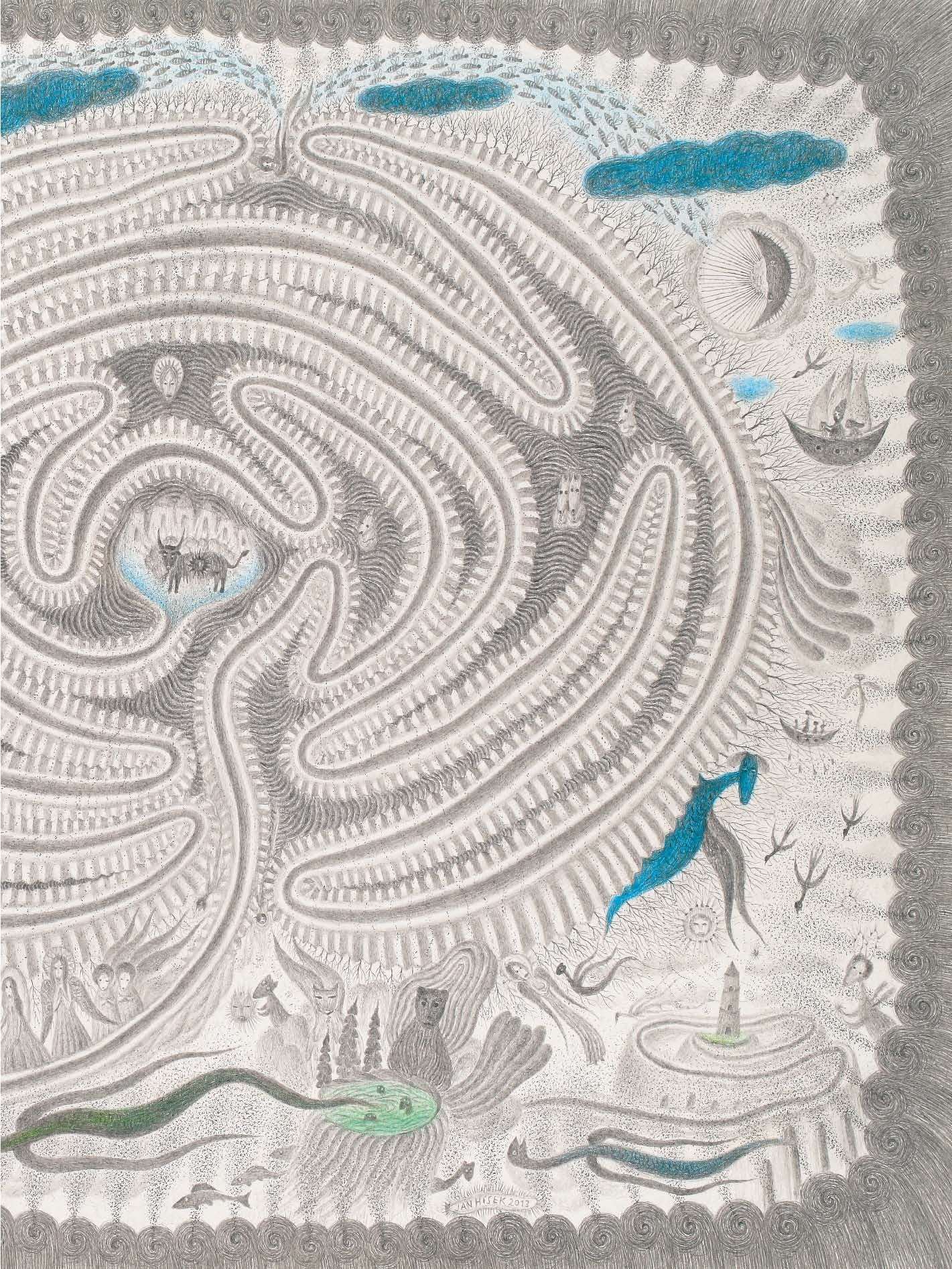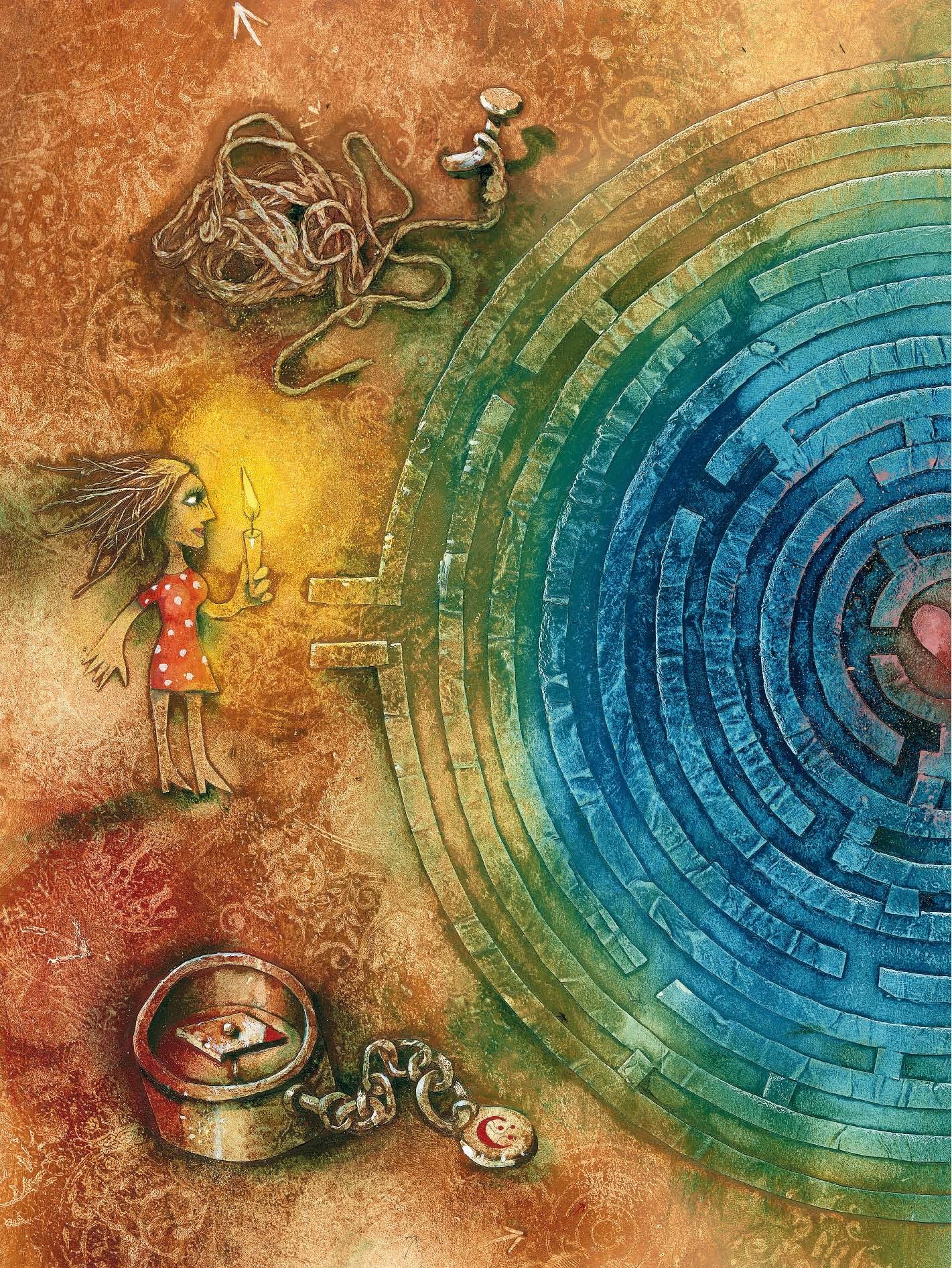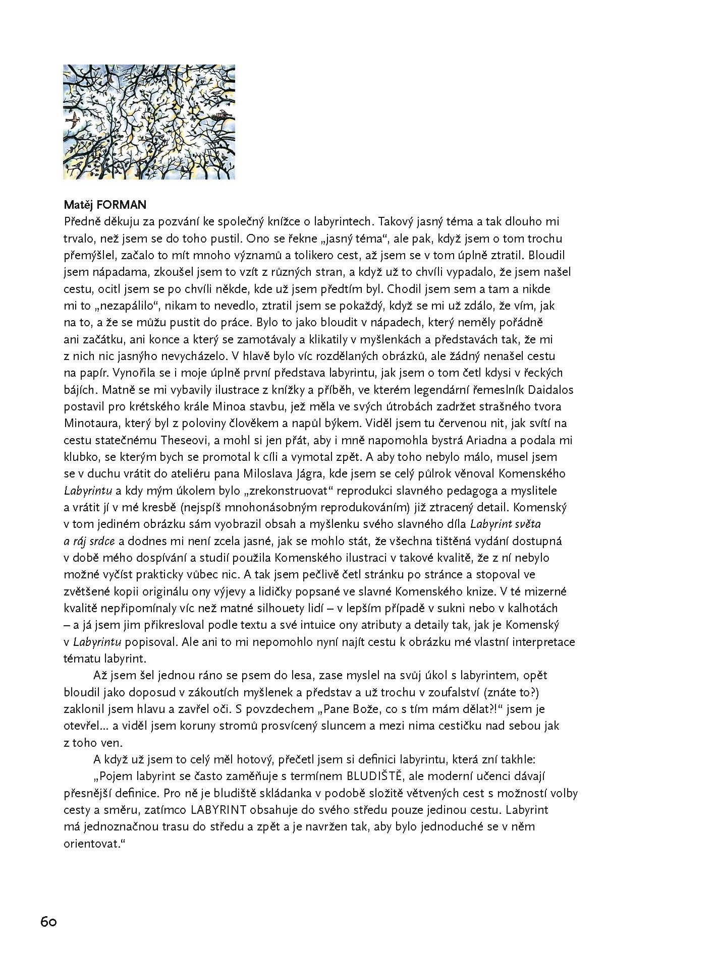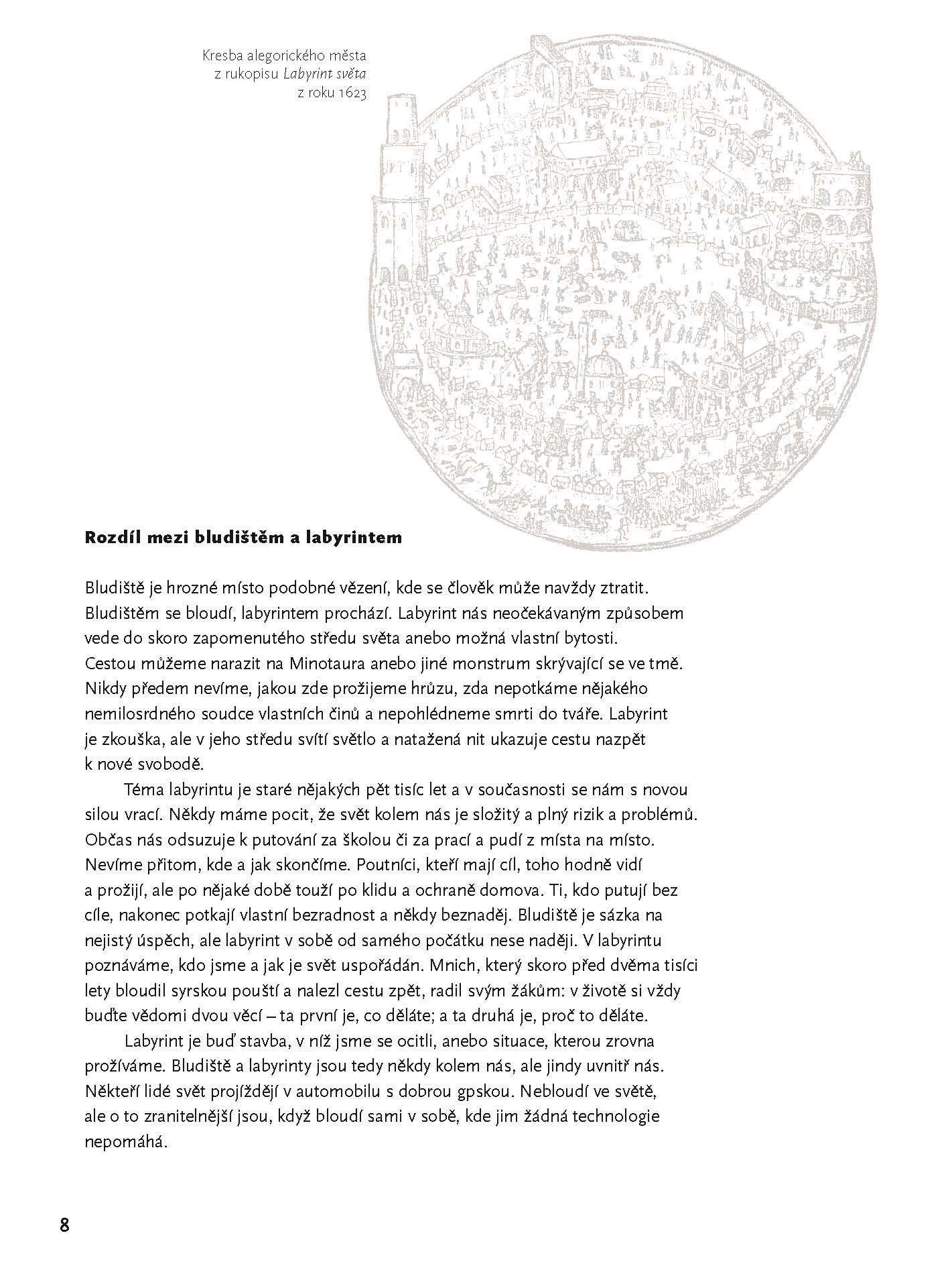 Čtenář má možnost prstem či ve fantazii procházet a proplouvat jedinečnými dvoustrannými ilustracemi, anebo se začíst do zasvěceného průvodního textu Václava Cílka, který je fenoménem labyrintů fascinován již dlouhá léta. A současný svět jako by se k principu labyrintů znovu vracel. Úvodní slova zamyšlení nad tajemstvím labyrintů od Václava Cílka nechť jsou pozváním k četbě a prohlížení této výjimečné knihy. Jsou též neotřelým vysvětlením, jaký je rozdíl mezi bludištěm a labyrintem: „Bludiště je hrozné místo podobné vězení, kde se člověk může navždy ztratit. Bludištěm se bloudí, labyrintem se prochází. Labyrint nás neočekávaným způsobem vede do skoro zapomenutého středu světa anebo možná vlastní bytosti.“