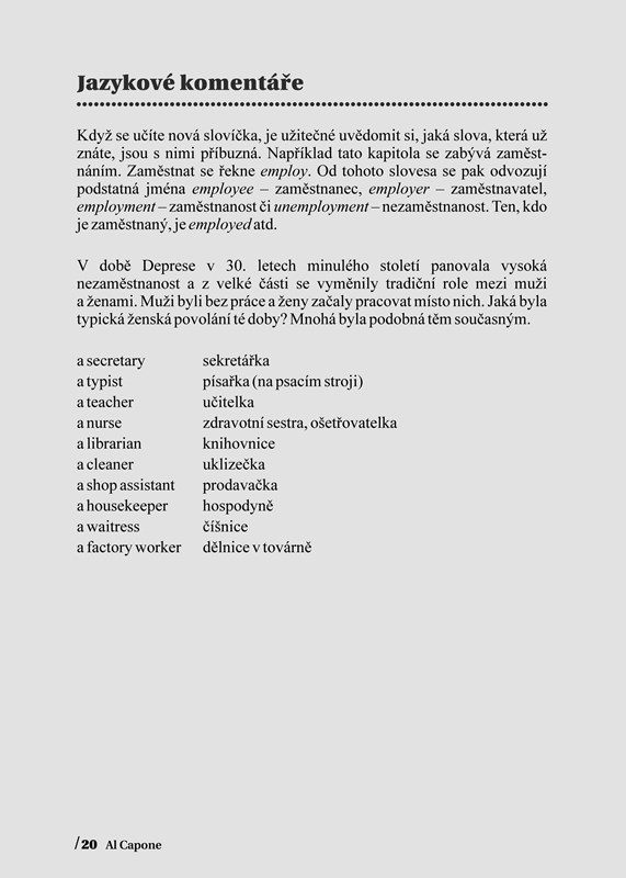 Jaký byl Al Capone? Byl to převážně chladnokrevný vrah, tvrdý byznysmen nebo milující otec a filantrop? Byl by tím, čím byl, kdyby nebylo prohibičního zákona? To se snaží prozkoumat tato publikace. O co se však kniha snaží především, je zdokonalení vaší znalosti angličtiny. Text je psaný jednoduchým jazykem, jehož porozumění vám pomůže zkontrolovat zrcadlový překlad. Po každé kapitole naleznete okomentované některé jazykové jevy, které se v textu vyskytly. Anglický text si také můžete poslechnout na přiloženém CD. CD obsahuje nahrávky ve formátu MP3. Vzadu v příloze se nachází stručný přehled anglické gramatiky.