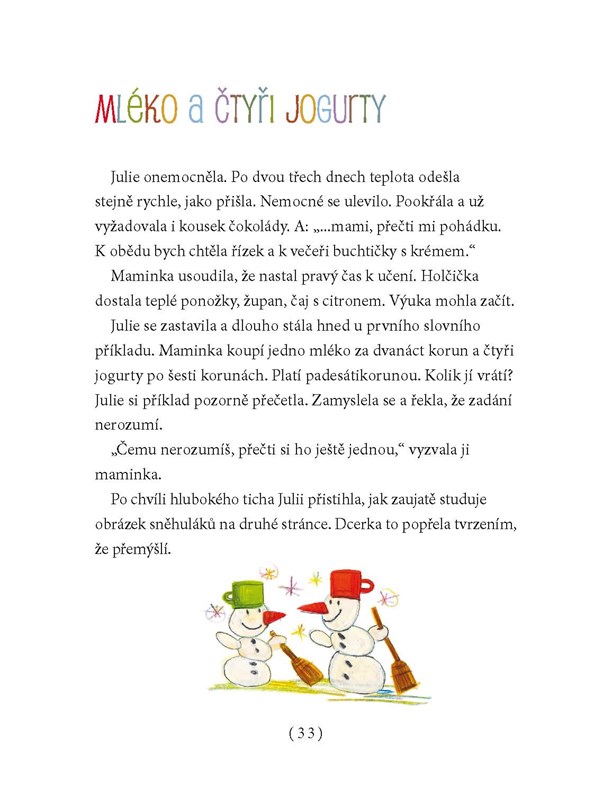 Dvanáct kousků, od každého něco. Nástrahy a překážky, škola a prázdniny, bílý den a černá noc, detektivka a záhada, zábava a vtip, hádanky a zapeklité otázky. Jednoduše všehochuť!
