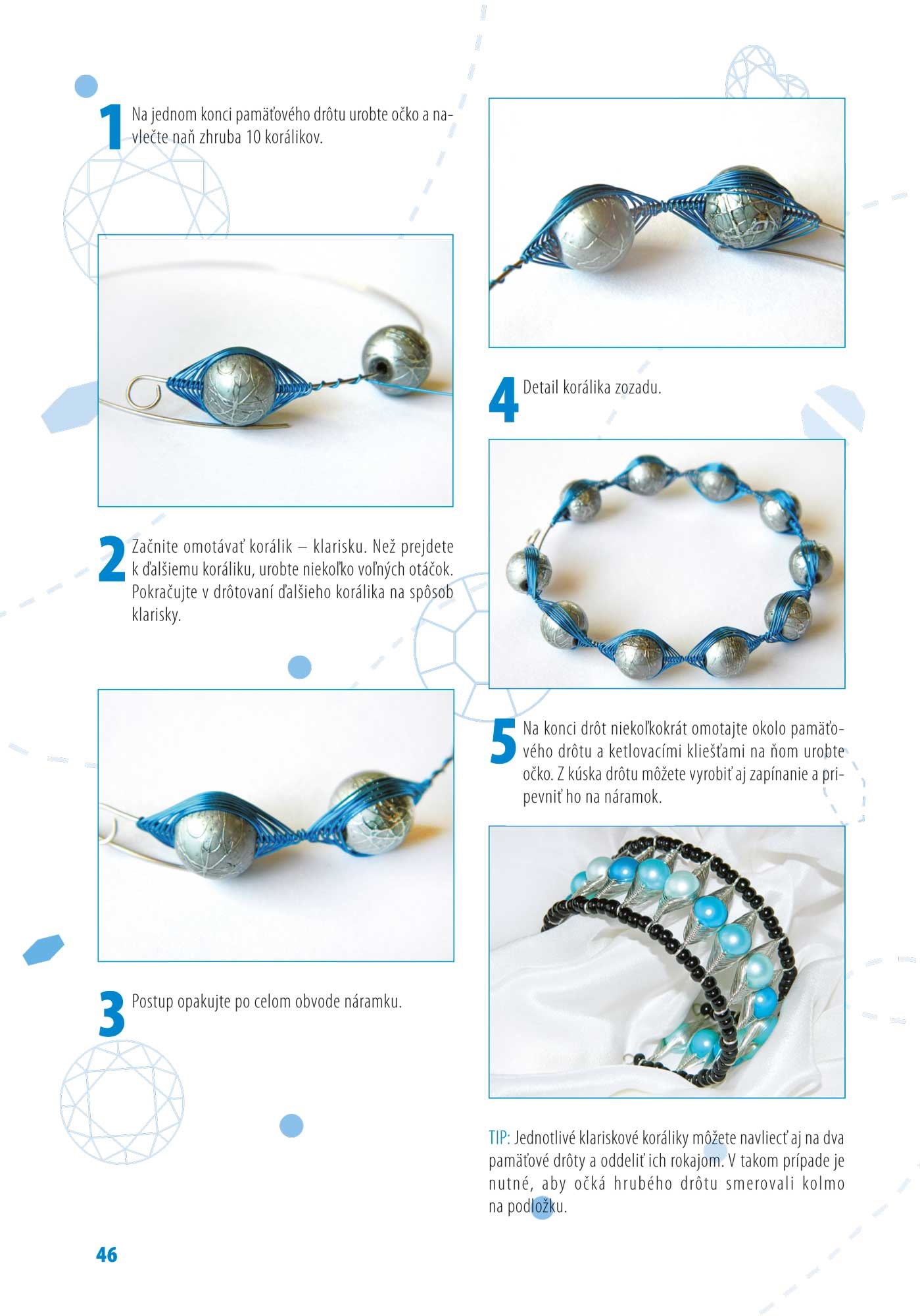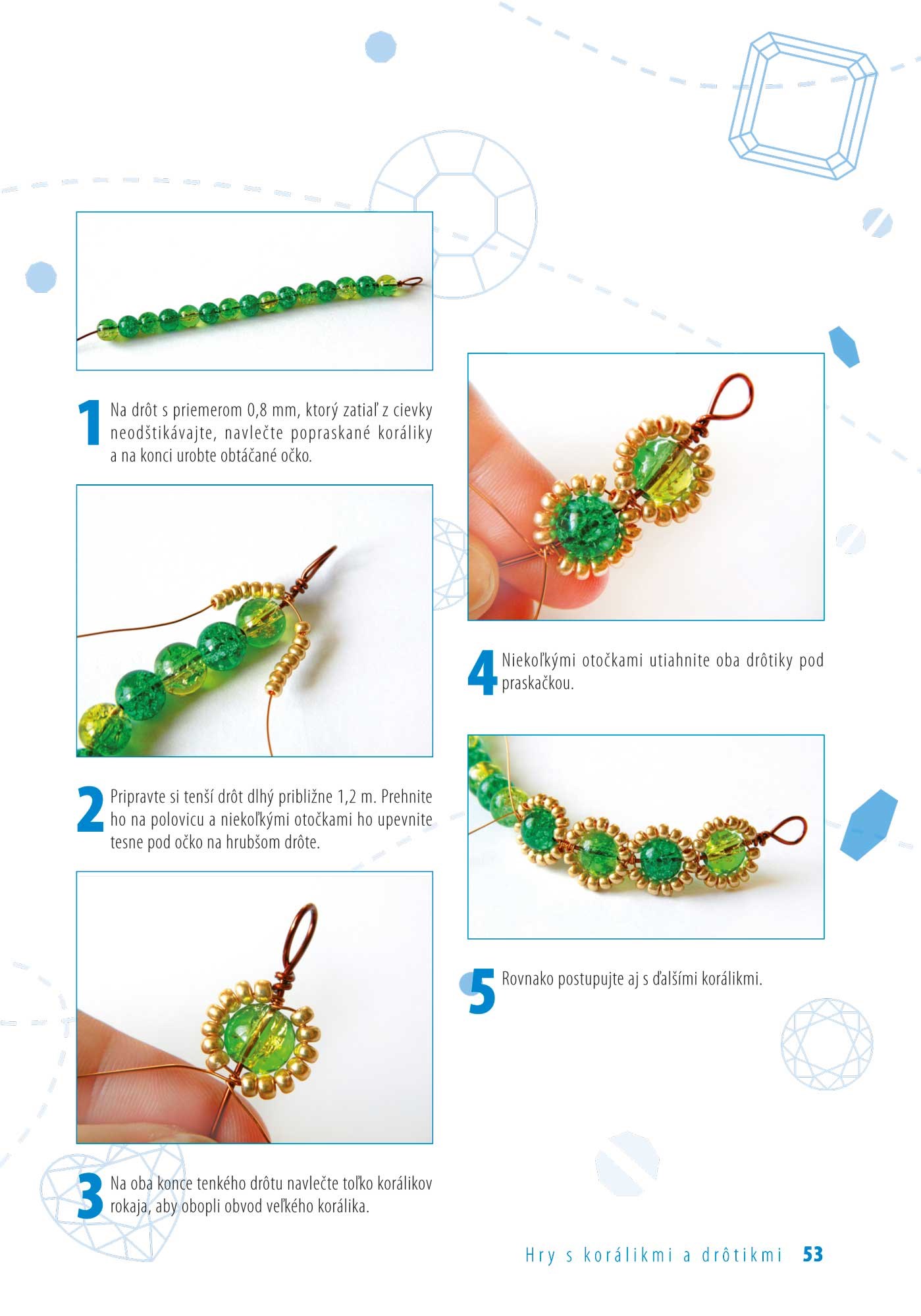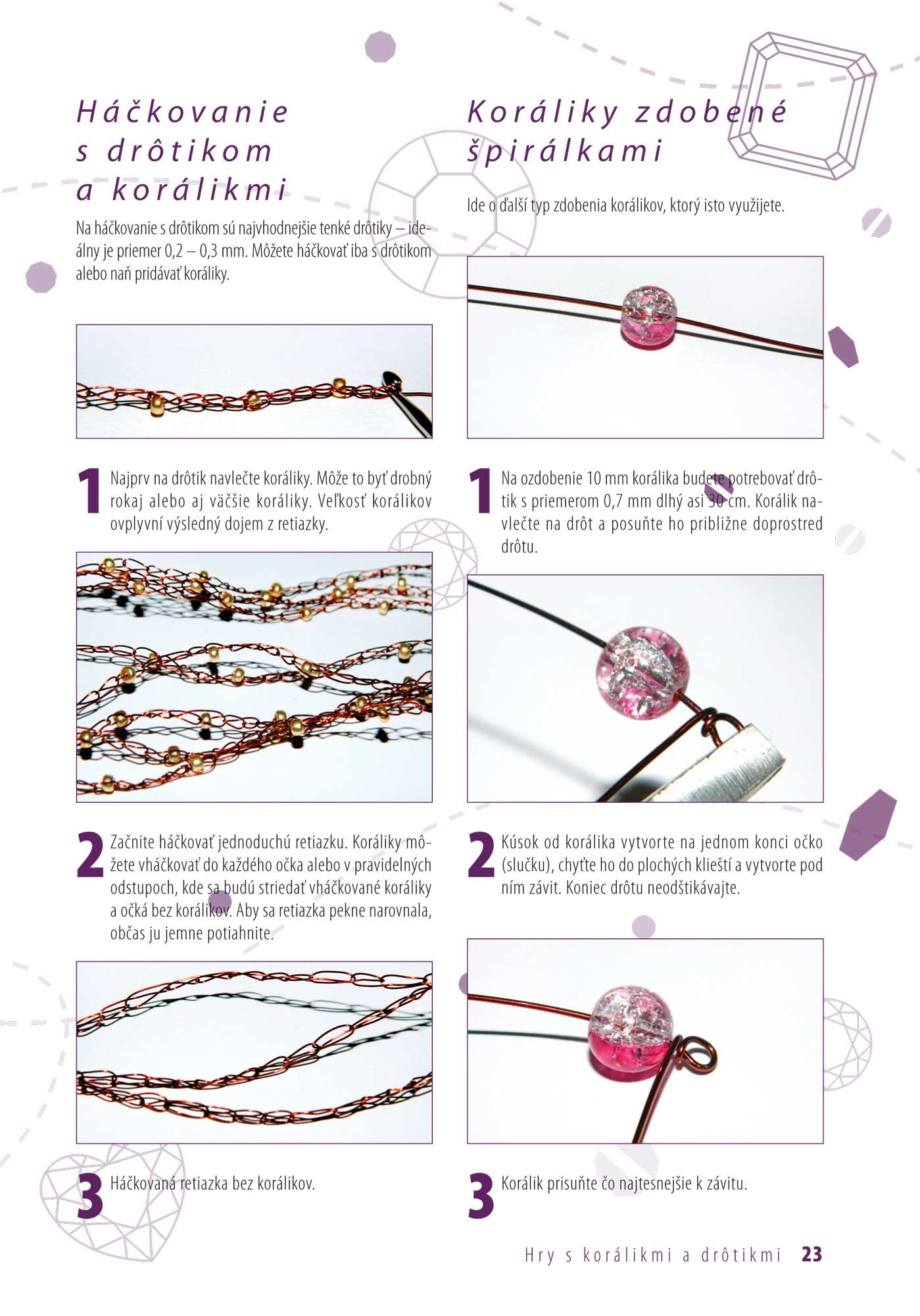 Ak radi pracujete s korálikmi a chceli by ste si vyskúšať aj drôtikovanie, držíte v rukách správnu knihu. Drôtikov sa nemusíte báť, v kombinácii s korálikmi si z nich vyrobíte šperky, ktoré budete s hrdosťou nosiť. V prvej kapitole sa zoznámite s potrebnými materiálmi a pomôckami, potom sa krok za krokom naučíte jednotlivé techniky a postupy – napríklad ako uzlovať alebo vyrobiť špirálu či korálikový výplet. Všetky postupy sú zrozumiteľne vysvetlené a doplnené fotografiami. Potom sa môžete bez obáv pustiť do výroby dvadsiatich štyroch originálnych šperkov – náramkov, náhrdelníkov, prstienkov, náušníc a brošní.