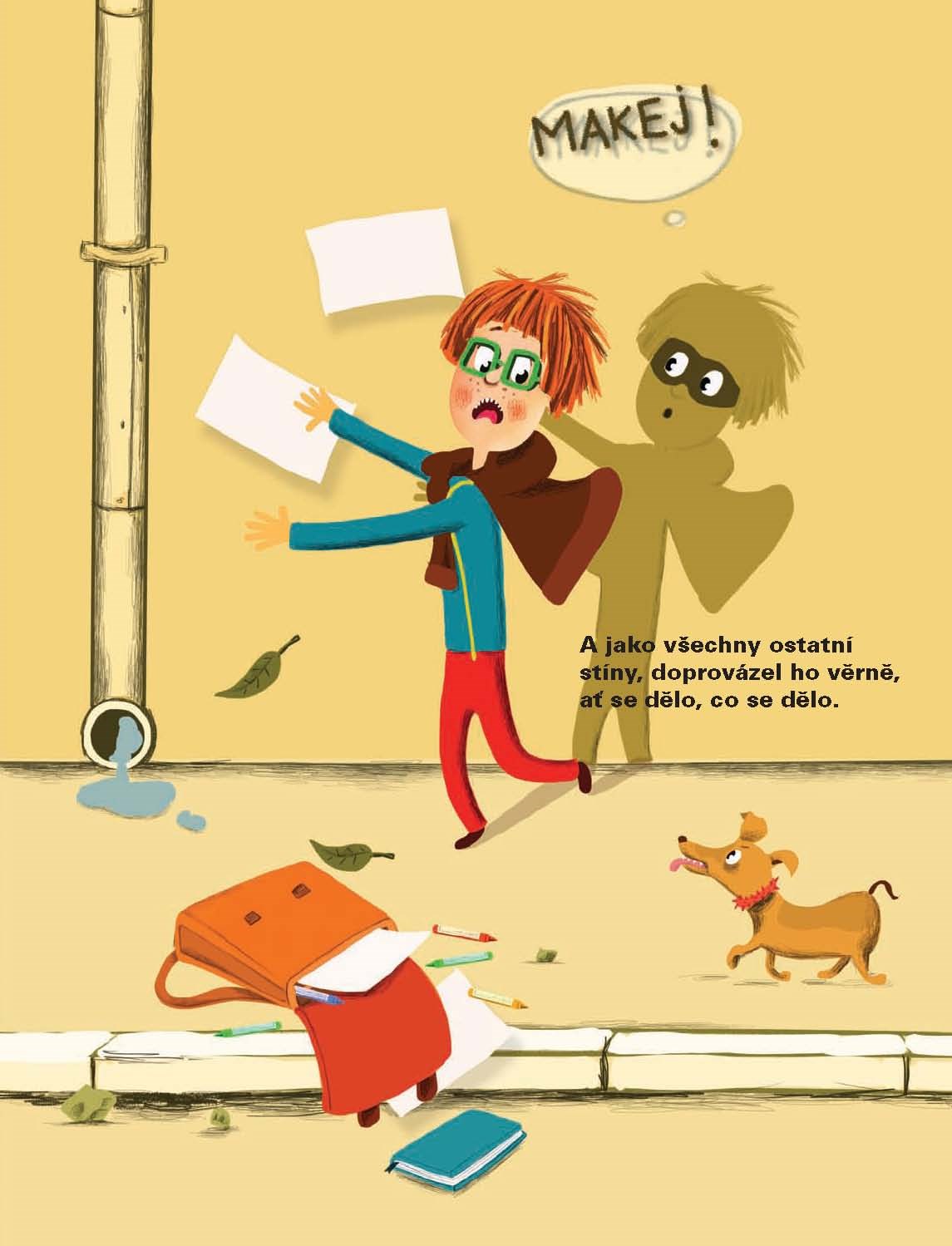 Každý někdy musíme dělat, co se nám nechce – mýt nádobí, jíst brokolici nebo psát úkoly z matiky. Co by ale měl teprve říkat stín kluka, který musí dělat jen to, co dělá kluk, ke kterému patří. Jednoho dne se mu ale jeho kluk ztratí, a Stín má náhle svobodu. Může chodit do kina, jezdit na kole i fandit na fotbale. Jenže brzy zjistí, že je mu samotnému smutno, navíc lidé se ho bojí. Vrátí se tedy raději ke svému klukovi? Nebo se mu podaří najít kamarády?