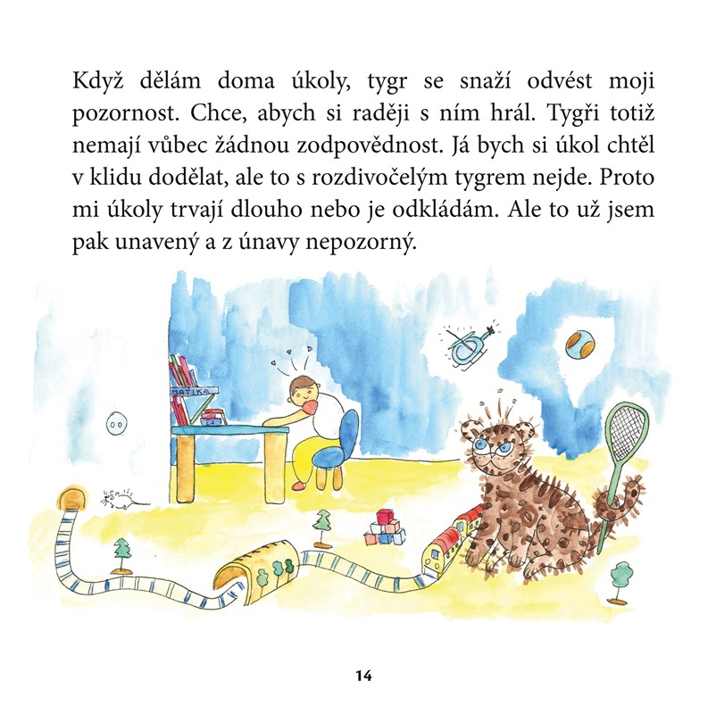 Nejžhavějším tématem současnosti, které se dotýká téměř všech rodičů, pedagogů a samozřejmě mnoha dětí, je ADHD. Strašák, který děsí rodiče i pedagogy. Kniha „Tygr dělá uáá uáá…“ je ojedinělým náhledem do dětské duše, napsaná podle skutečných příběhů dětí právě s tímto syndromem, a to především ve formě hyperaktivity.