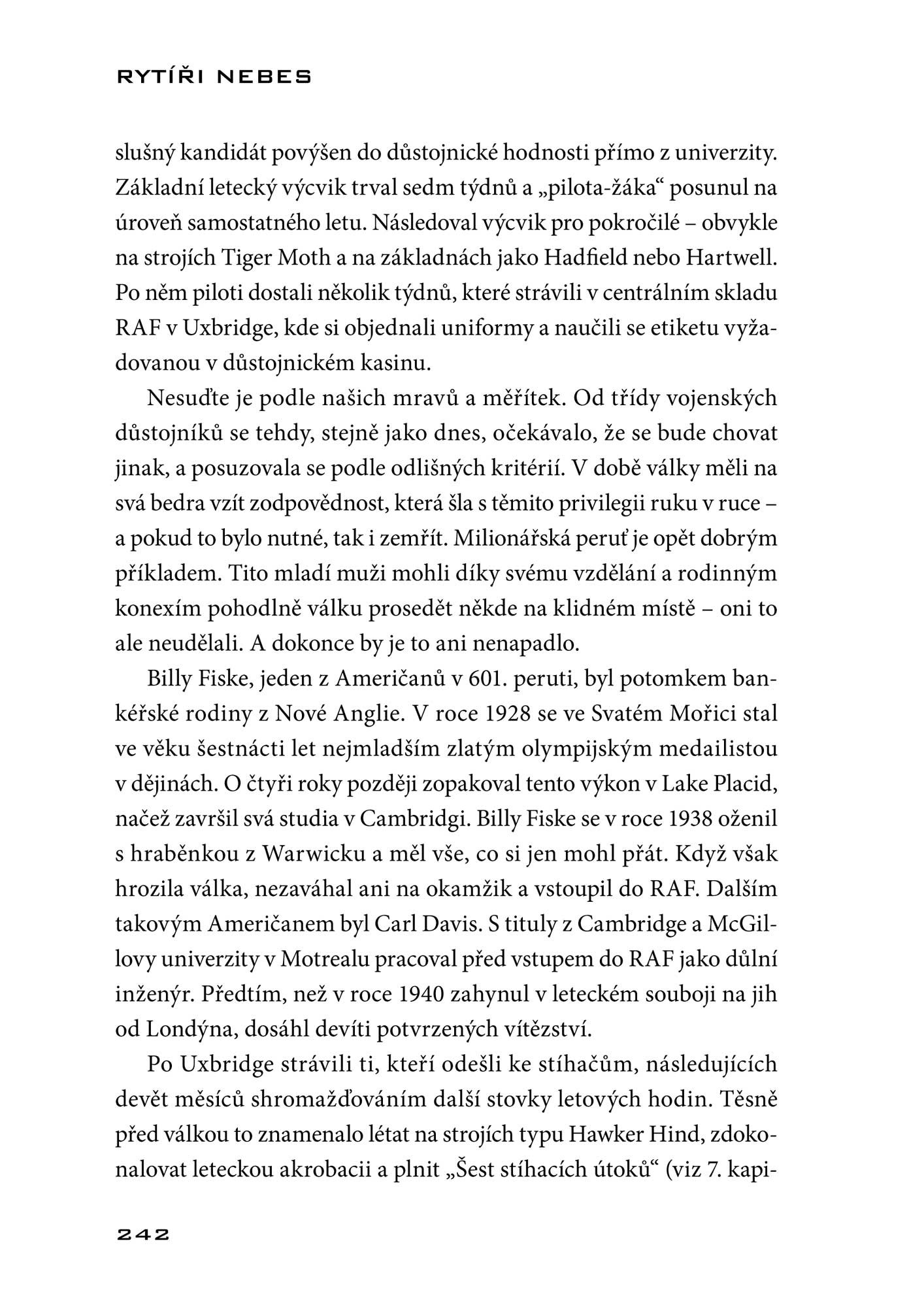 V knize naleznete příběhy spojené s těmi nejvěhlasnějšími letouny i s letci, kteří je pilotovali – od strojů Sopwith Camel a Fokkerových trojplošníků, až po Micubiši Zero, Supermarine Spitfi re, nacistické Bf 109, P-51 Mustang, Grumman Hellcat, F-4 Phantom, F-105 Th underchief, F-16 Falcon, F/A-18 SuperHornet a další. Dozvíte se také o Escadrille LaFayette, Létajících tygrech, Orlech RAF, Divokých lasičkách a jiných legendárních jednotkách.