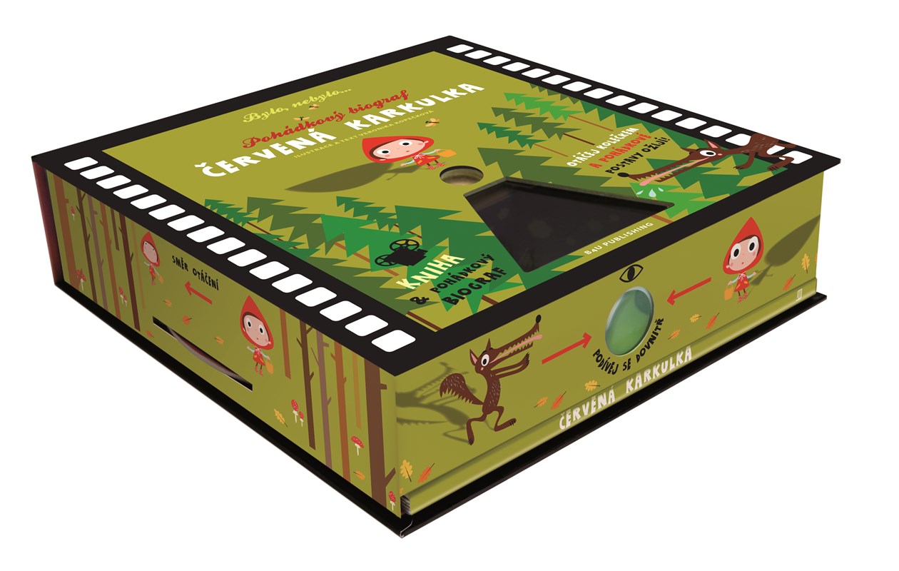 Set obsahuje barevně ilustrované leporelo se známou pohádkou o Červené karkulce a box se zvětšovacím kukátkem, ve kterém děti ke každé stránce knihy naleznou prostorovou scénu na otočném mechanismu. Leporelo lze ze setu vyjmout a dítě si tak může prohlížet pohádku ve zvětšovacím kukátku, zatímco mu ji rodič předčítá. Pro orientaci v příběhu slouží čísla scén, která se objevují na horní straně boxu. Vítejte v našem pohádkovém biografu.