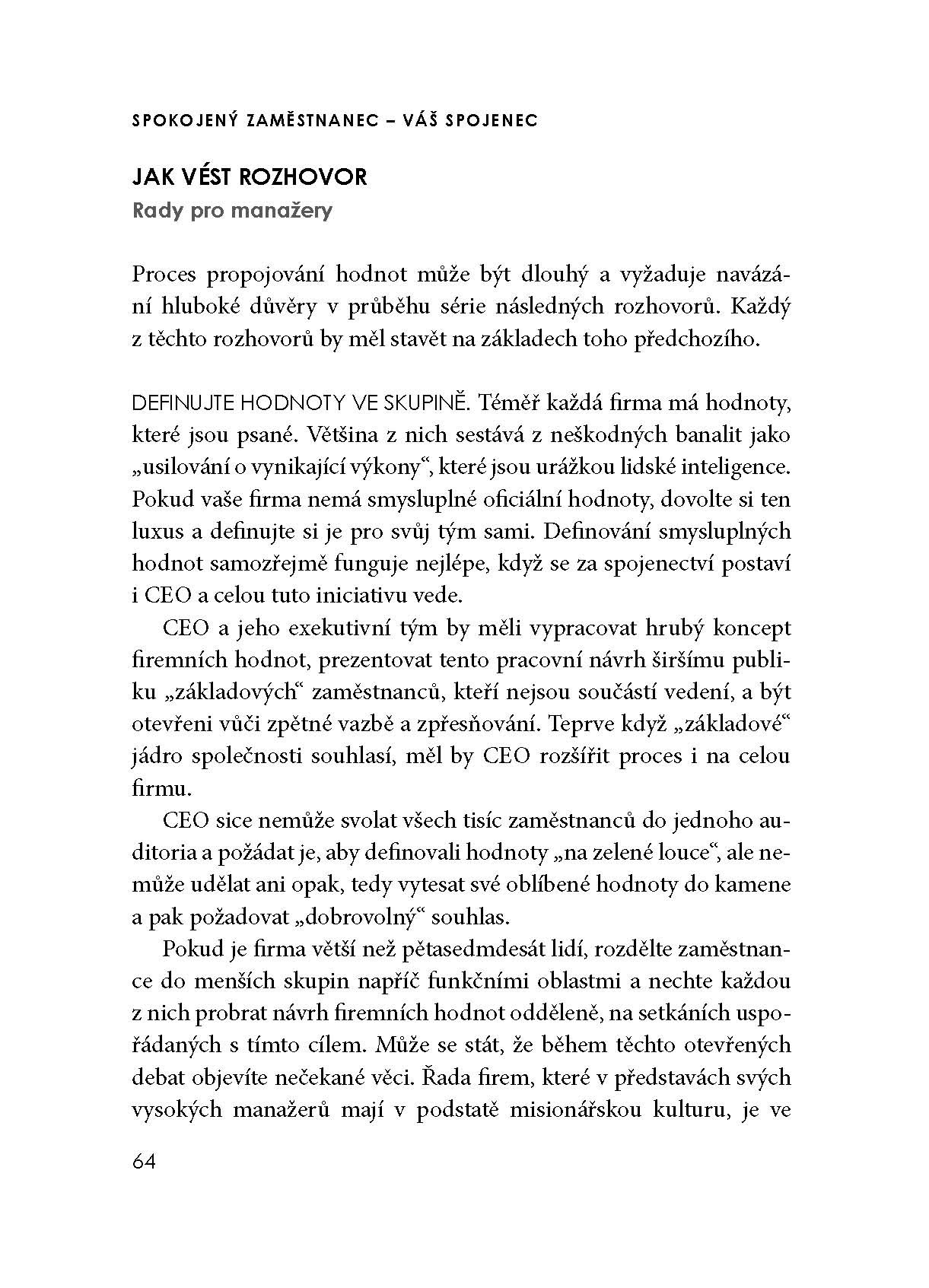 Je tedy jasné, že zaměstnavatelé, manažeři i zaměstnanci potřebují pro své vztahy nový rámec, ve kterém by si mohli navzájem dávat takové sliby, které skutečně mohou dodržet. A právě ten se pokouší nabídnout kniha Spokojený zaměstnanec – Váš spojenec.