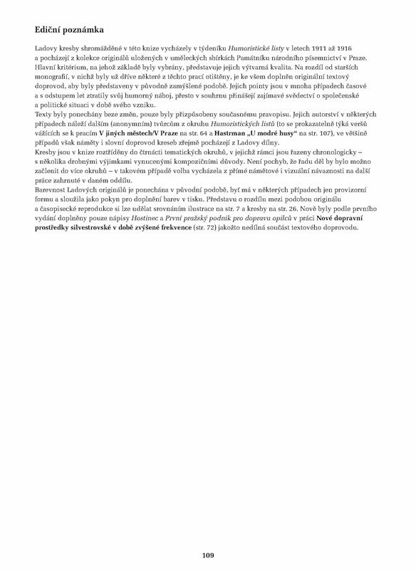 Kniha je rozdělena podle námětů a na rozdíl od všech předchozích monografií provází každou kresbu původní dobový text. Všichni zájemci o Ladovo dílo tak mohou sledovat vývoj výtvarníkovy linky ve zlomovém období, kdy se formoval jeho nezaměnitelný styl, a zároveň si udělat bližší představu o dobovém společenském a politickém kontextu, v němž známý umělec tvořil. Všechny originály byly pečlivě zrestaurovány a zachycují stav kreseb ještě před tím, než byly pro tisk kolorovány grafikem Humoristických listů.