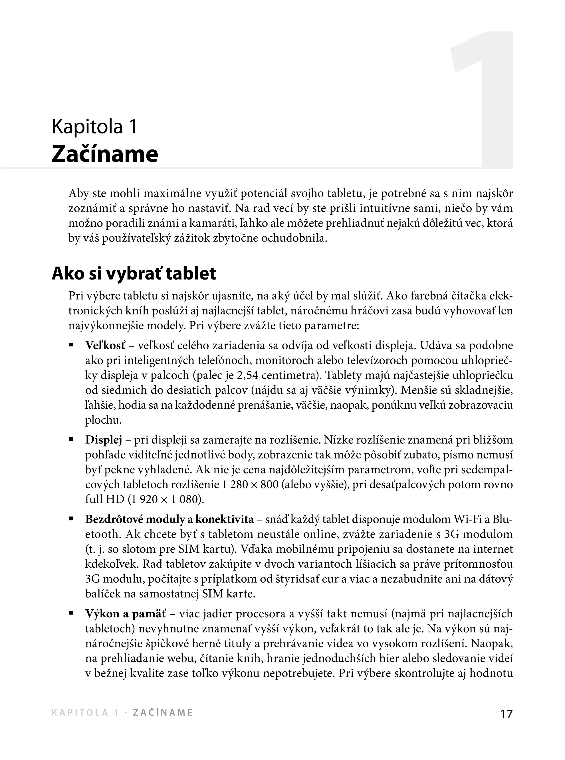 Uvažujete o kúpe tabletu alebo ste jeho čerstvými majiteľovi? Hľadáte ucelený zdroj informácií, ako ho efektívne používať a maximálne využiť jeho potenciál? Potrebné informácie nájdete v knihe z edície Pre úplných začiatočníkov. Všetky popísané činnosti sa zameriavajú na praktické využitie tabletu v najrôznejších scenároch, to všetko krok za krokom bez zbytočných detailov.