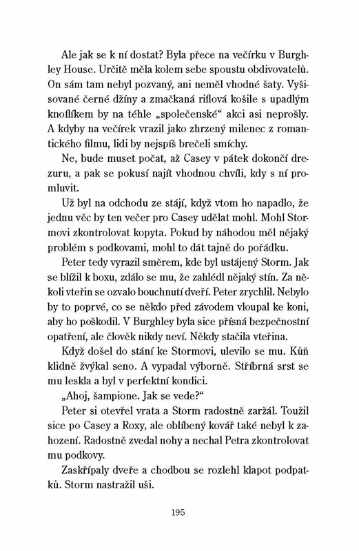 Casey a Storma čeká po Badmintonu a Kentucky třetí velký závod v řadě: Burghley. Pokud zvítězí, zapíše se jako nejmladší vítězka všech tří závodů do historie. V sázce je ale mnohem víc: její láska k Petrovi i přátelství s trenérkou Angelikou, bez které by Casey svých úspěchů nikdy nedosáhla. Obojí ohrožuje pohledný Kyle, „sen každé dívky“, a zároveň jeden z nejlepších trenérů military v celé Anglii. Ale nic není, jak se zdá… Čemu dá nakonec Casey přednost? Starým přátelům, nebo slávě a životu v luxusu? Její rozhodnutí možná leckoho překvapí…