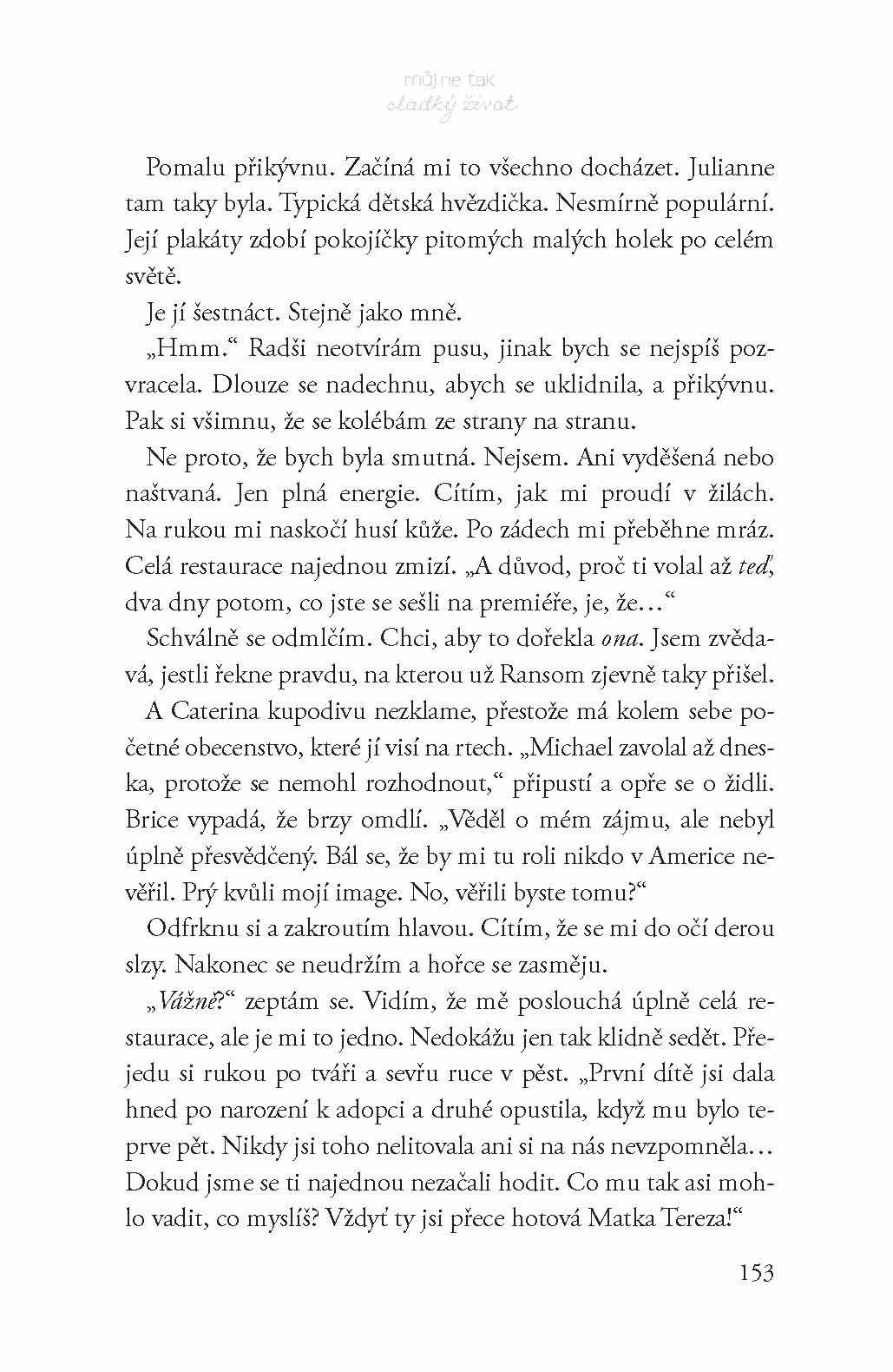 Cat Crawfordová nechce nic jiného než být normální – nebo aspoň tak normální, jak jen dcera hollywoodského režiséra může být. Už se zdá, že hvězdy její přání vyslyšely: má úchvatného kluka Lucase, žije s ní její úžasná sestřenka Alessandra a její táta se chystá vzít si svou sympatickou snoubenku. Ale pak její zpovykaná matka v celostátním vysílání oznámí světu, že musí své dceři něco důležitého říct… A způsobí tak mediální šílenství.