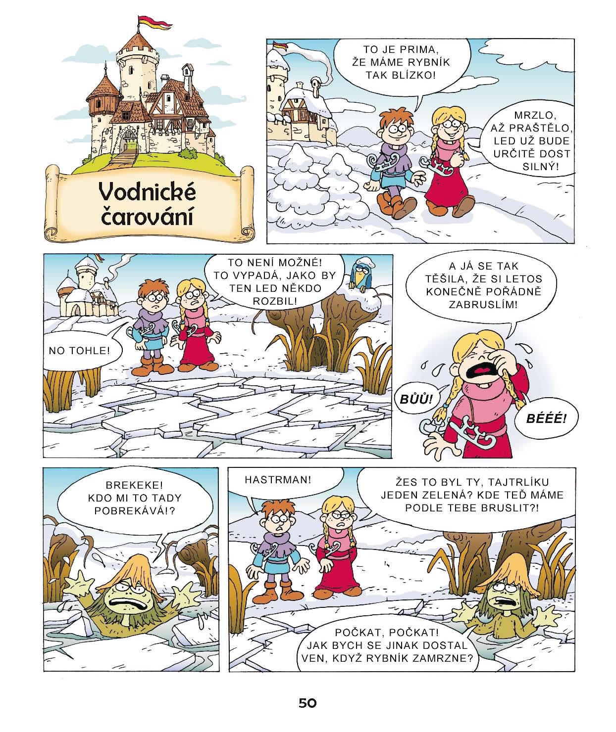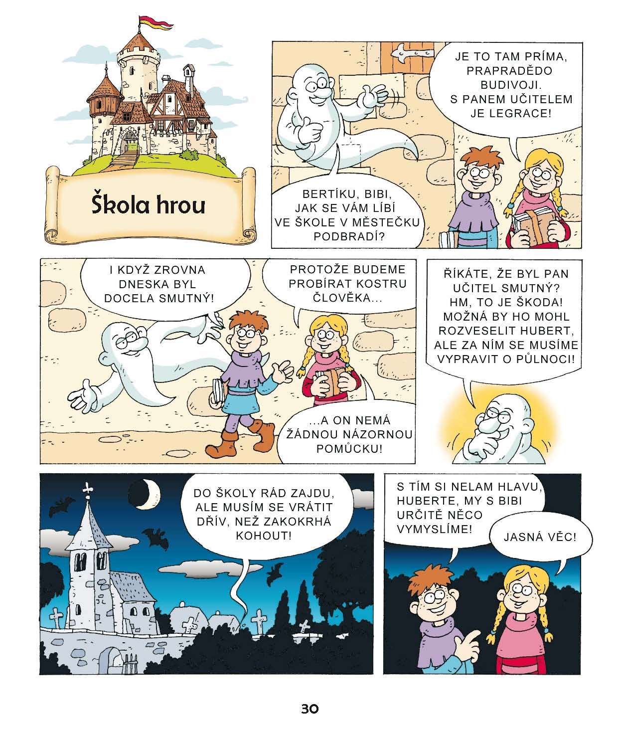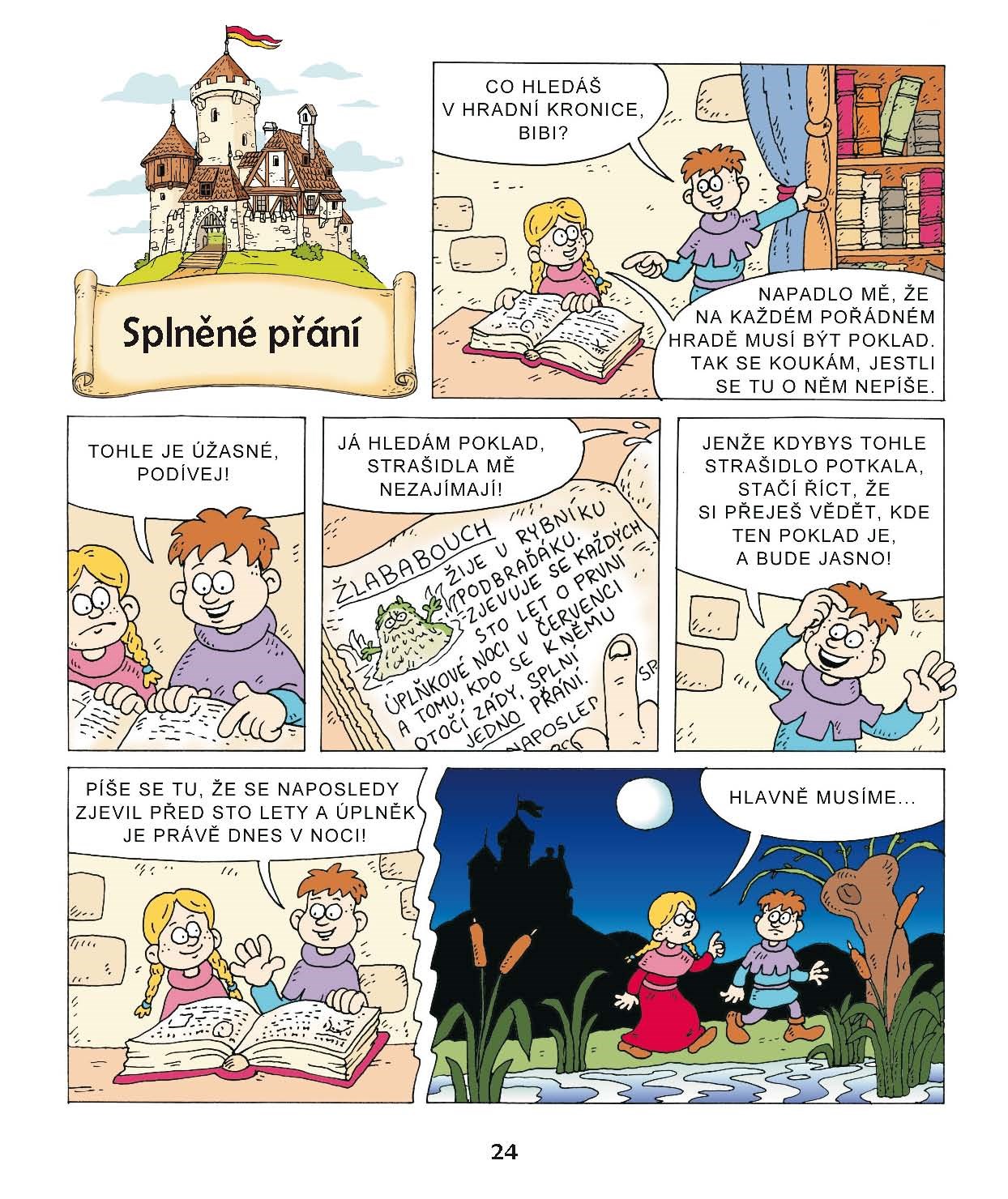 Na hradě Bradě, v městečku Podbradí nebo okolních lesích se prohánějí Bertík a Bibi, děti barona Barnabáše a baronky Berty. Proskakují z jednoho komiksového políčka do druhého a zažívají veselé příhody v pohádkovém světě, kde na koštěti poletuje teta Čárová, ve věži straší prapraděda Budivoj, v kuchyni Zašupšák a mezi stromy tančí meluzína.