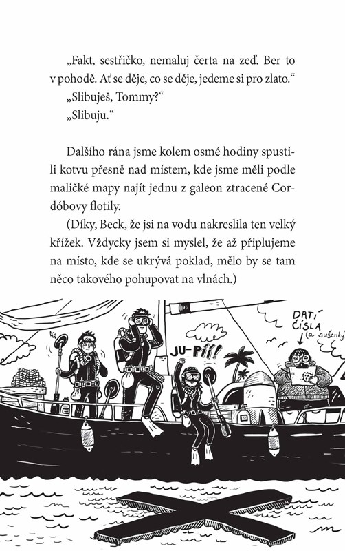 Piráti, hledání podmořských pokladů, detektivní pátrání, kdy vodítkem jsou zašifrované stopy, tajní agenti i překupníci, o tom všem je strhující vyprávění, k němuž nakreslila komiksové obrázky Back a dvojče Bick k nim připsal ironické poznámky.