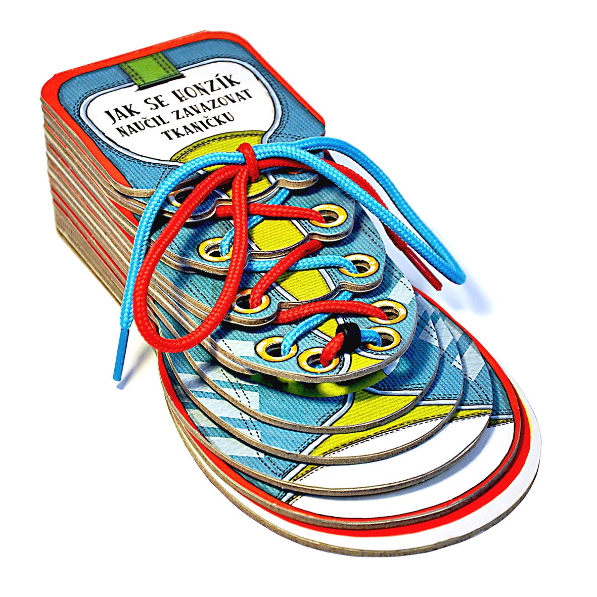 Leporelo ve tvaru dětské botičky naučí děti přístupnou a hravou formou zavazovat tkaničky. Titul obsahuje jednoduchý motivační příběh a pod sešněrovanými stránkami v jednotlivých krocích i ilustrovaný návod jak si tkaničku zavázat.