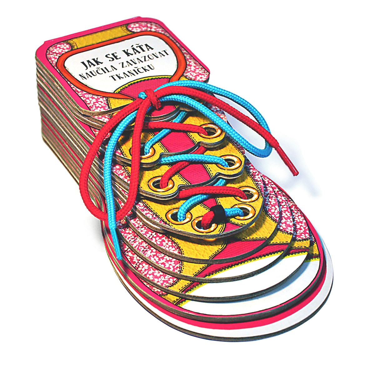 Leporelo ve tvaru dětské boty. Naučte děti zavazovat tkaničku.