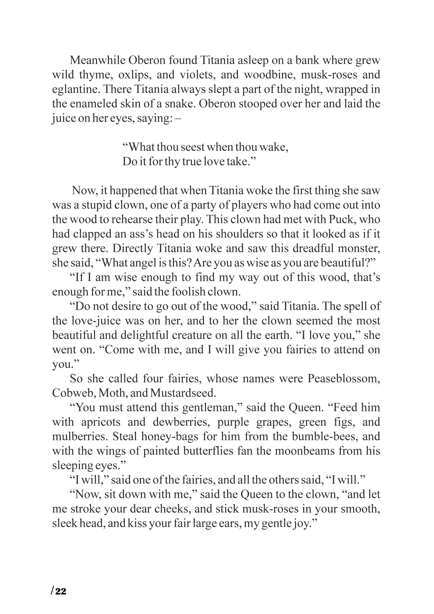 Převyprávěla, s občasnými doslovnými citacemi, také dvacet Shakespearových her tak, aby byly srozumitelné pro anglické děti. Doufáme, že stejně dobře budou srozumitelné i pro studenty angličtiny, jejichž znalost jazyka ještě není na takové úrovni, aby mohli číst Shakespeara v originálu.