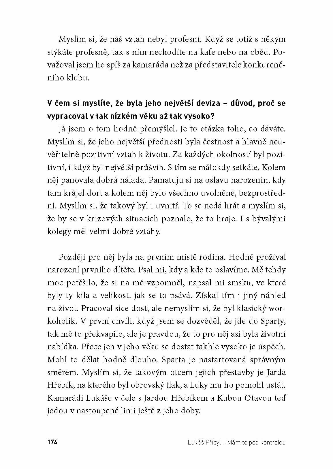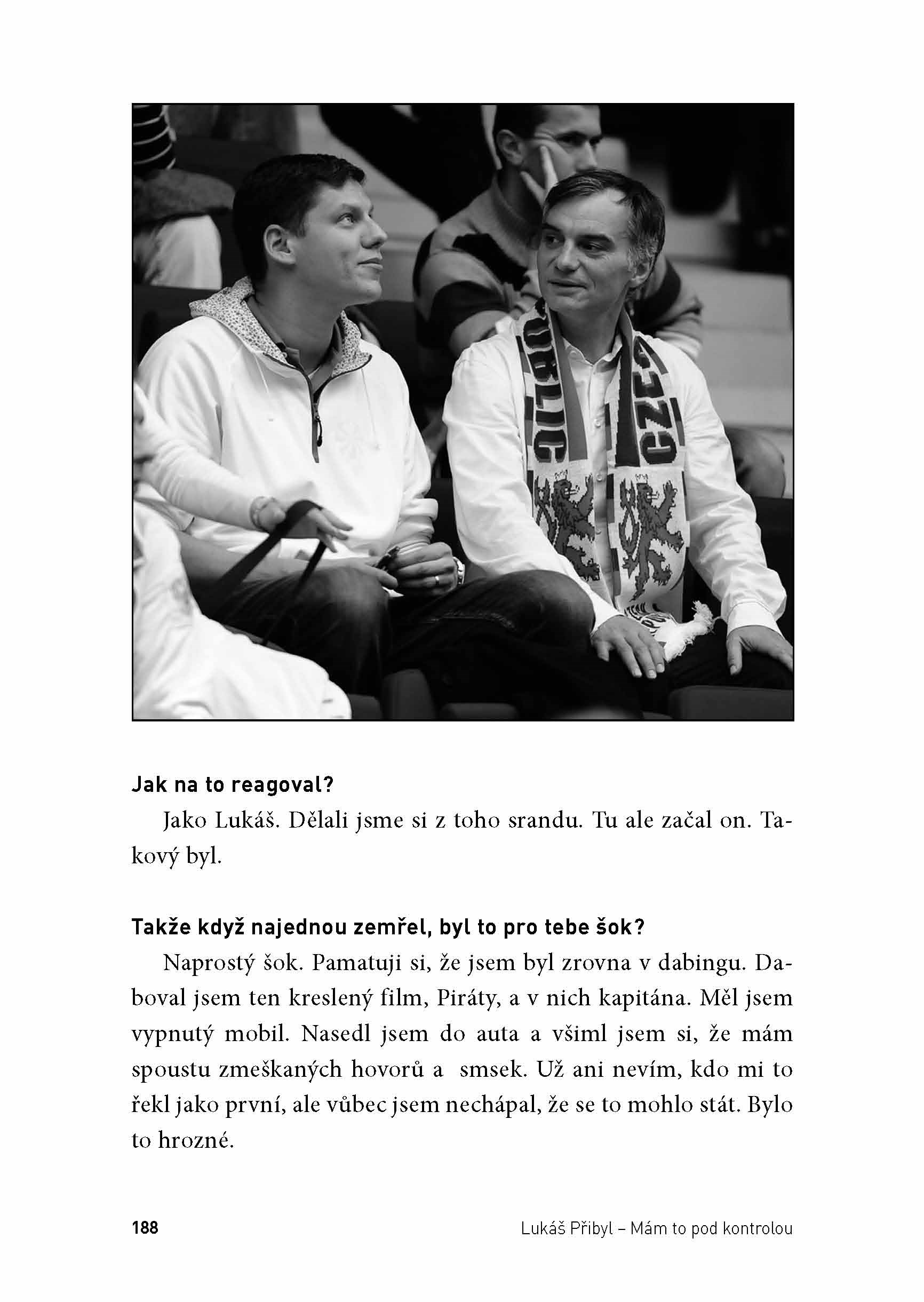 Kniha Lukáš Přibyl: Mám to pod kontrolou si neklade za cíl být obsáhlou biografií. Je spíše antologií osobních vzpomínek a autentických výpovědí známých osobností z Lukášova okolí, kterým Příba i tři roky po svém nečekaném odchodu stále chybí. Jen namátkou jmenujme alespoň některé z nich: Radek Sňozík, Milan Šimáček, Pavel Hoftych, Otakar Černý, Vítězslav Lavička, Antonín Panenka, Jakub Otava, Ivan Trojan, Petr Svěcený, Robert Záruba, Jiří Dienstbier ml. a mnoho dalších.