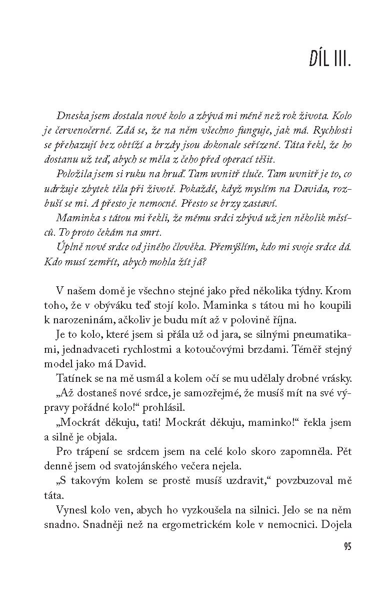 Amanda a Jenny jsou nerozlučné kamarádky. Zanedlouho jim bude čtrnáct a nejraději jezdí na kole nebo nakupují oblečení. Na konci školního roku se u nich ve třídě objeví David a Amanda se do něj bezhlavě zamiluje. Naštěstí to vypadá, že i David se o ni zajímá. Na jednom večírku se už už schyluje k jejich prvnímu polibku, jenže pak se náhle Amanda probouzí v nemocnici a neví, co se s ní stalo. Má na své tělo příliš velké srdce. Pokud se nenajde brzy vhodné srdce pro transplantaci, zemře. Amandin svět se obrací naruby a vše najednou přestává dávat smysl.