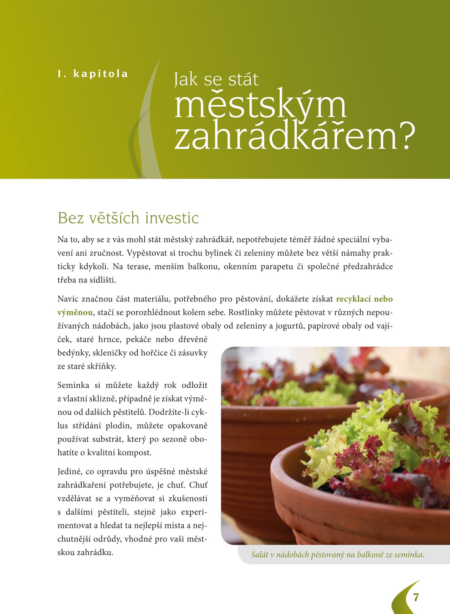 V knize dále naleznete tipy, čím můžete netradičně obohatit svůj dosavadní jídelníček a zájemci o založení komunitních zahrad a kompostovišť získají podrobný návod, jak na to.
