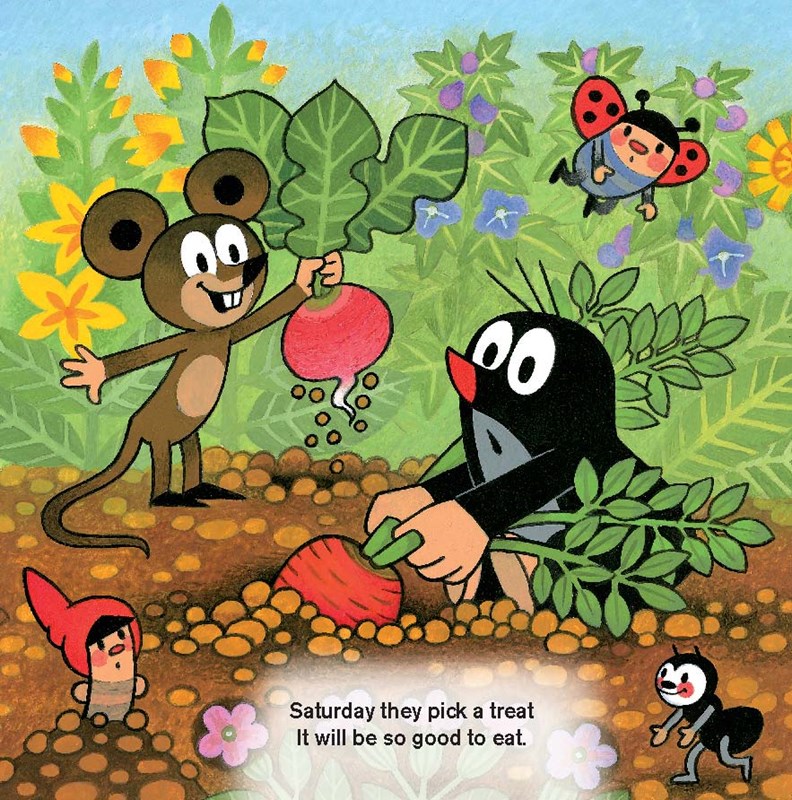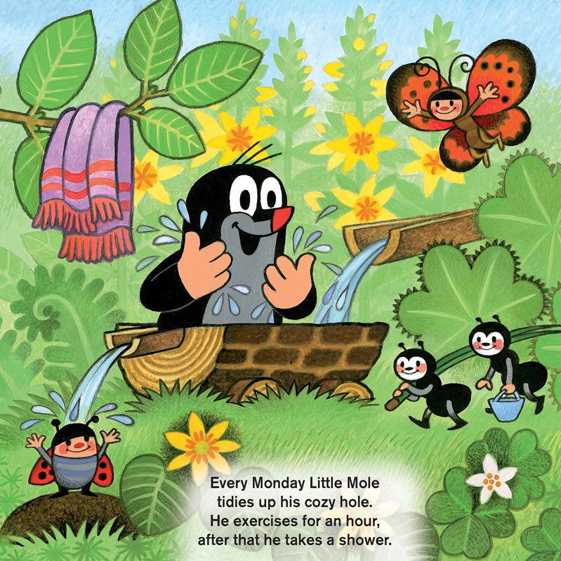 Dítě se tak s pomocí krásných ilustrací a hravých veršů snadno naučí, jak následují jednotlivé dny v týdnu za sebou a čím jsou pro většinu lidí zajímavé. Titul navazuje na úspěšnou čtveřici leporel Krtův rok.