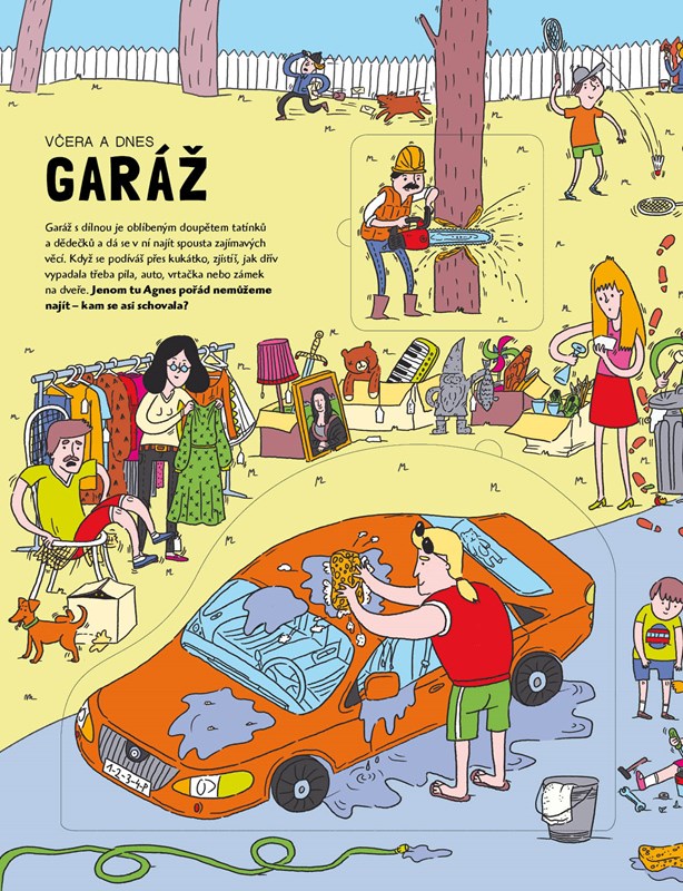 Napadlo vás někdy, jak se žilo v minulosti? Jak vypadal první telefon nebo předchůdce budíku, s čím si hrála babička, když byla malá, a jak bylo asi veselo na praprapradědečkových oslavách? Co si oblékali lidé před sto nebo dokonce mnoha tisíci lety? Stroj času sice ještě nikdo nevynalezl, ale přesto se s námi hravě dostanete do dávných dob. Máme pro vás totiž kouzelné kukátko. Stačí se podívat pod jedno z několika desítek okének uvnitř knihy, a hned zjistíte, co lidé kdysi běžně používali při práci na zahradě nebo v kuchyni, jak měli zařízený obývací nebo dětský pokoj, čím byly vybaveny koupelny, garáže a různé typy domů.