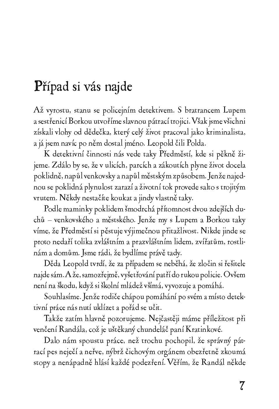 Seznamte se s Leopoldem alias Poldou, amatérským detektivem, a jeho pátracím týmem: sestřenicí Borkou Laborkou a bratrancem Lupem! Zatímco tato neohrožená trojice řeší záhadu rozbitých ptačích krmítek, stane se mnohem závažnější zločin: krádež vzácného diamantového náhrdelníku. Souvisí spolu tyto dva případy nějak? A podaří se je detektivní partě vyřešit? Nebo je předstihne konkurenční tým?