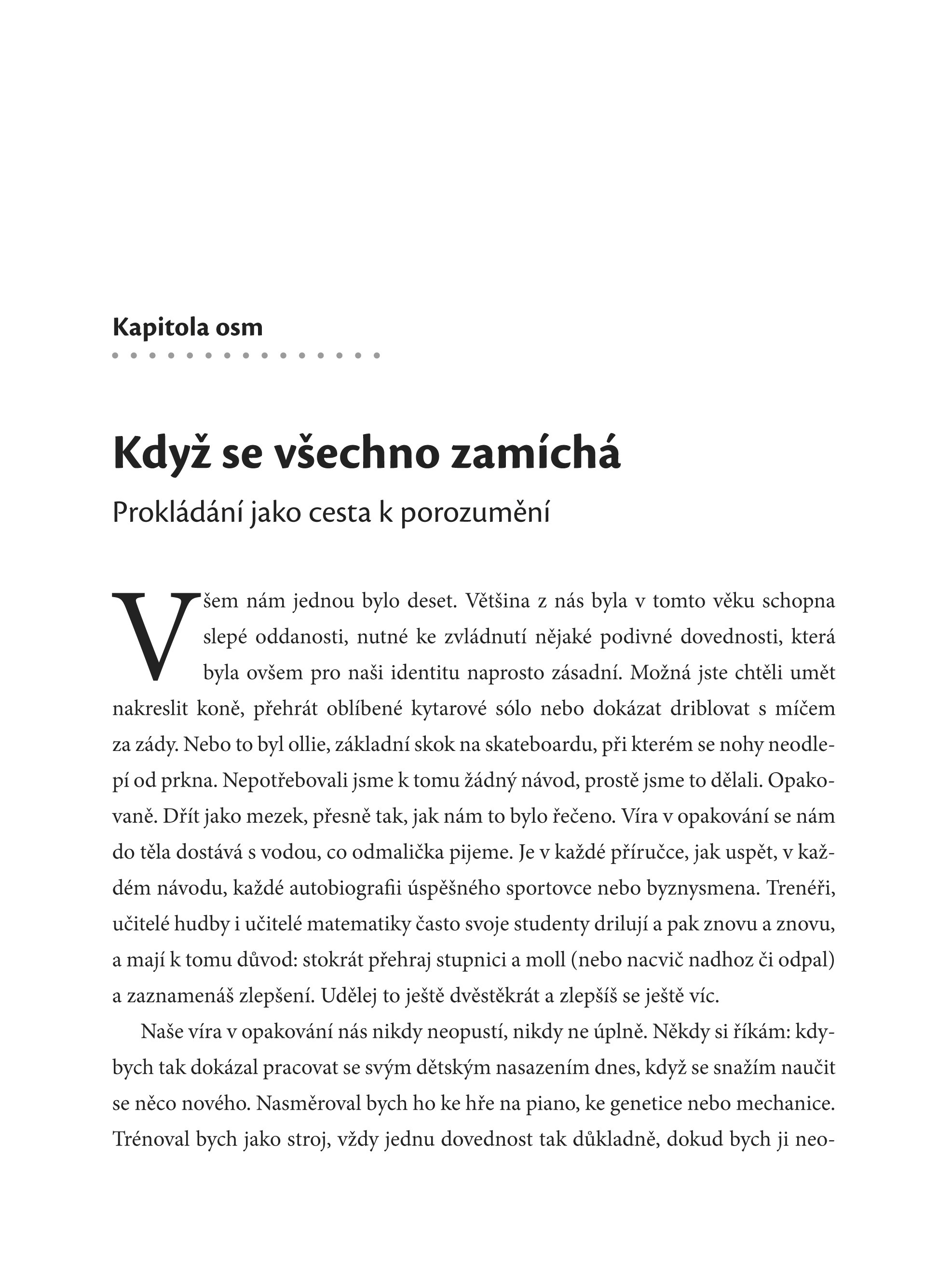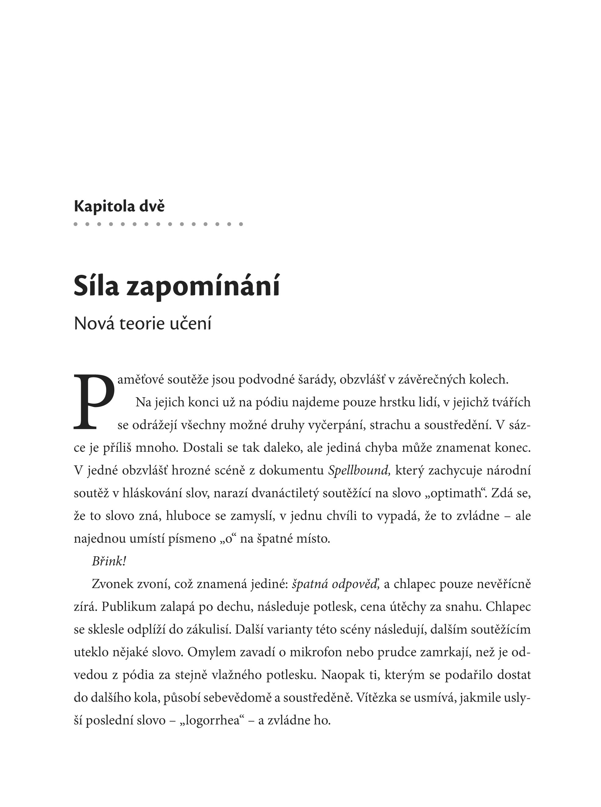 Ať už jste o správném učení slyšeli v životě cokoli, zapomeňte na to! Benedict Carey, oceňovaný vědecký reportér z New York Times, shrnul dosavadní poznatky z oblasti výzkumu lidské paměti a servíruje je čtenáři zároveň s praktickými a použitelnými radami.