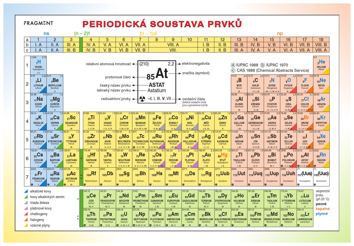 Periodická tabulka prvků bude vaším nepostradatelným pomocníkem nejen v hodinách chemie. Díky laminovaným deskám se tabulka nepoškodí a zůstane dlouhou dobu jako nová.
